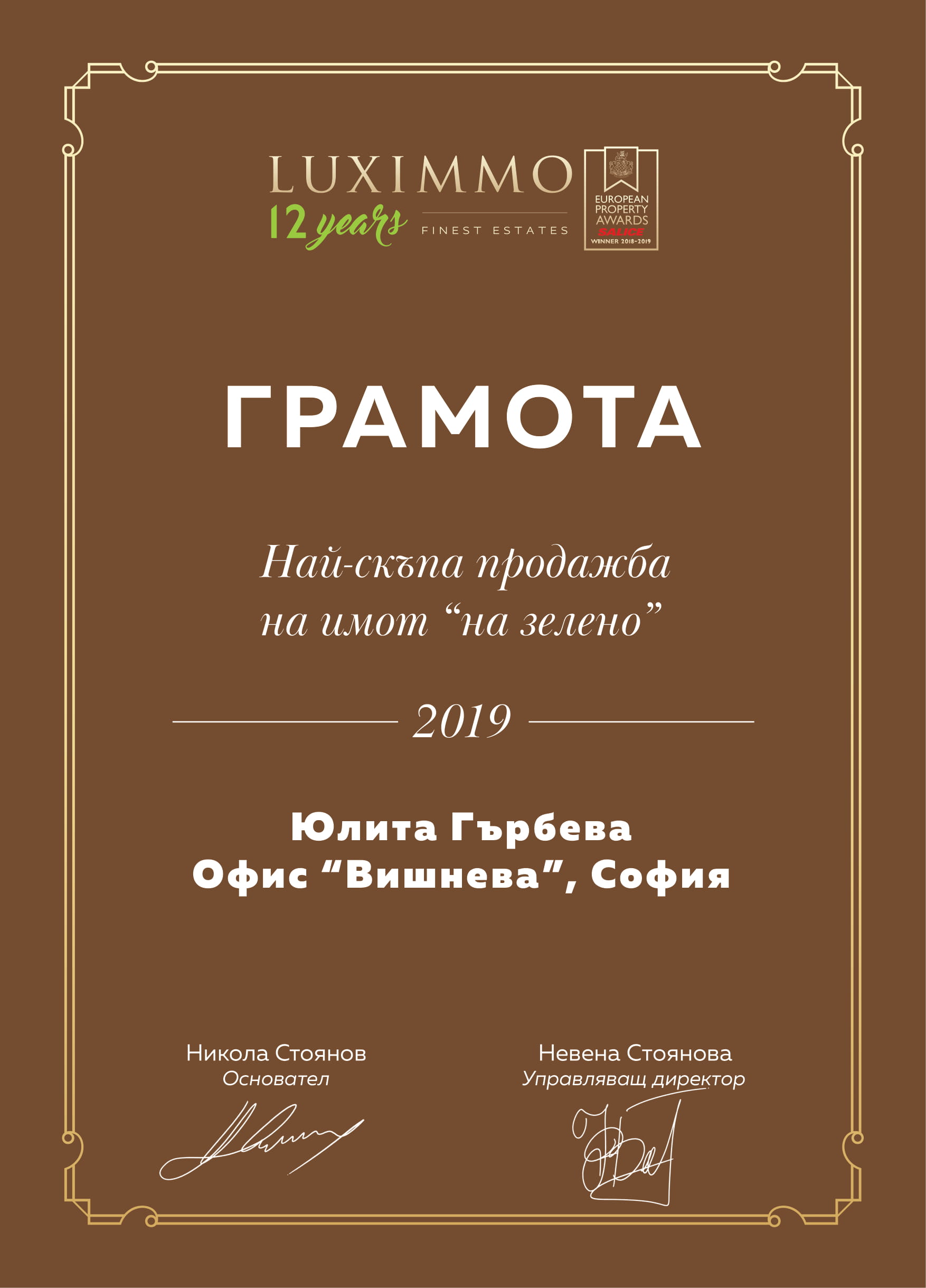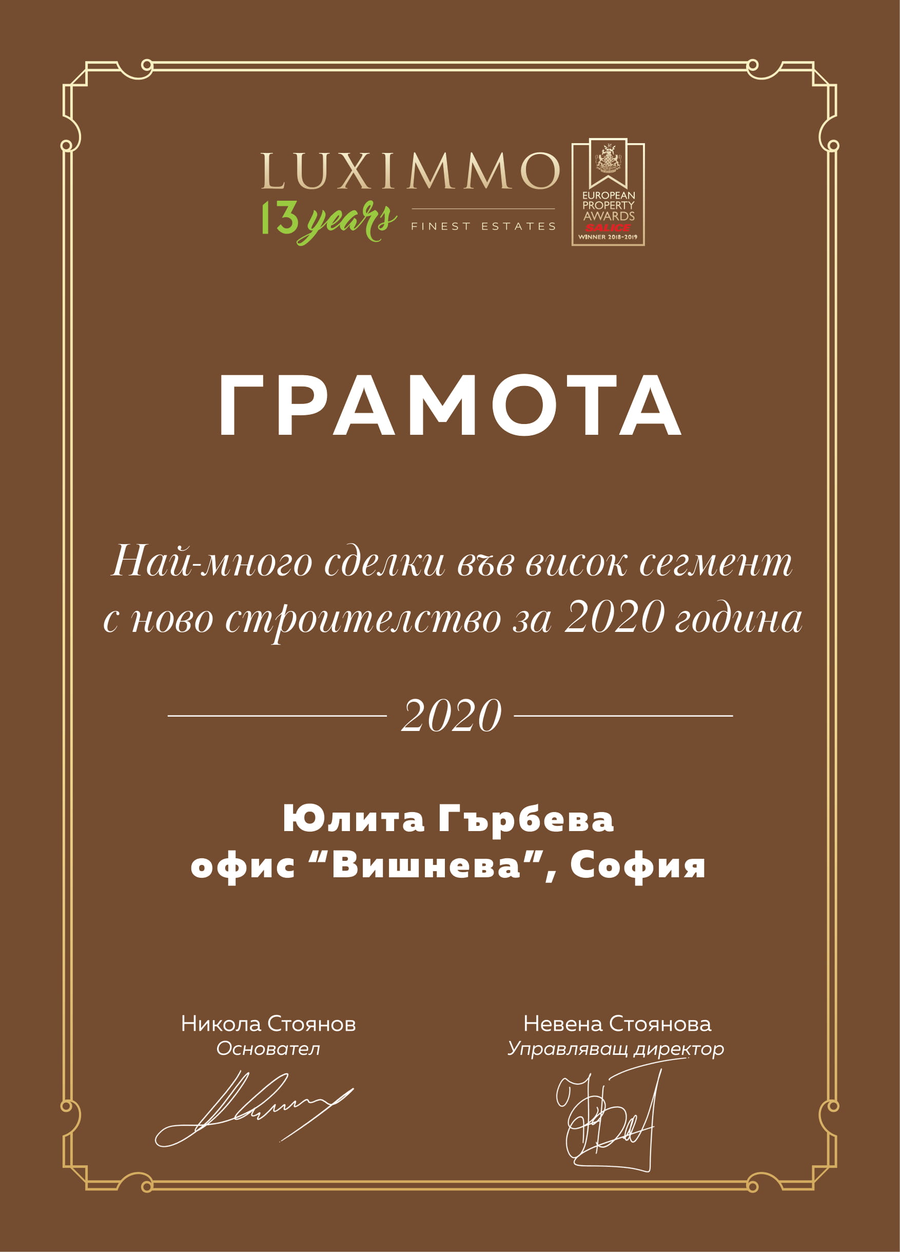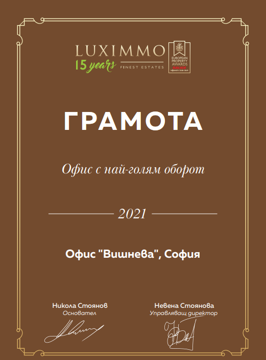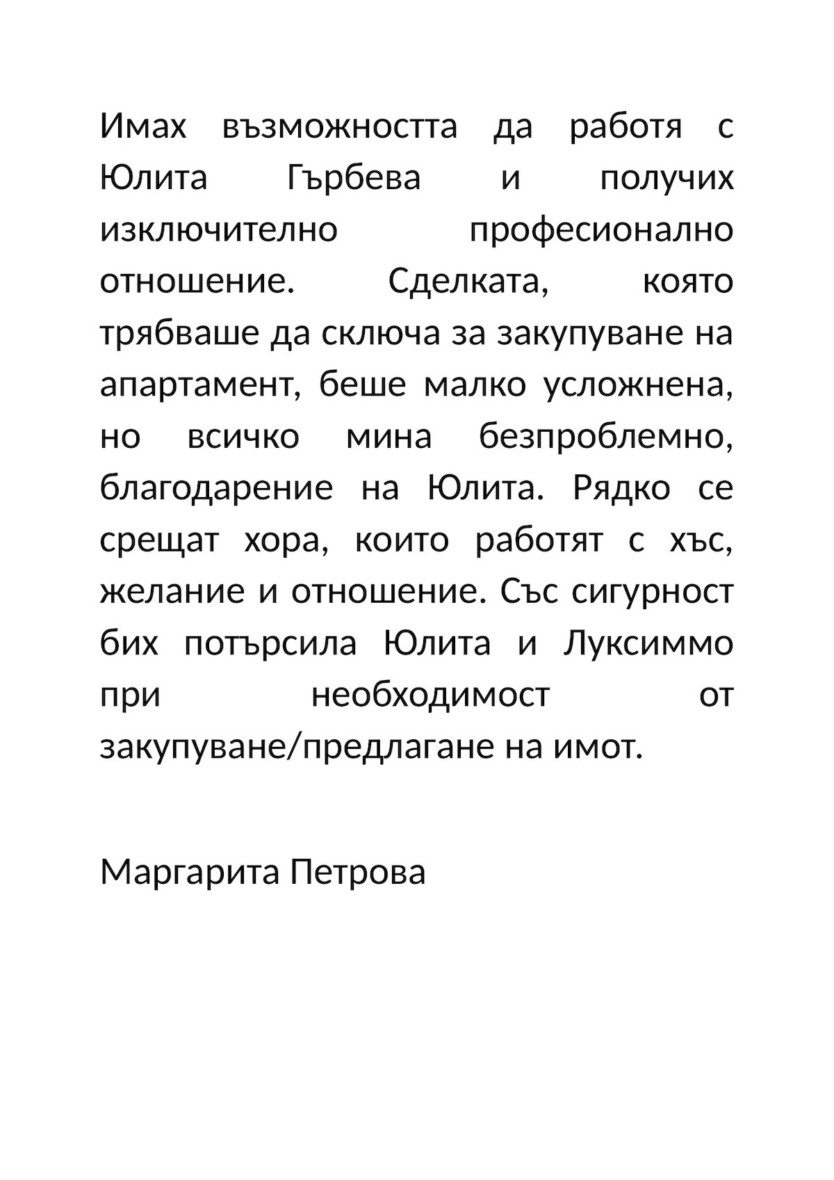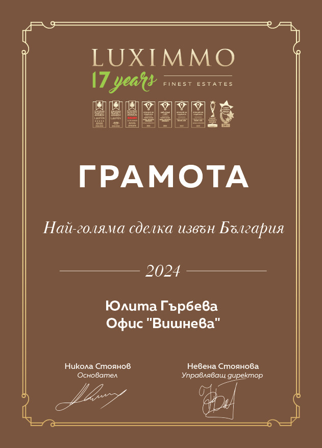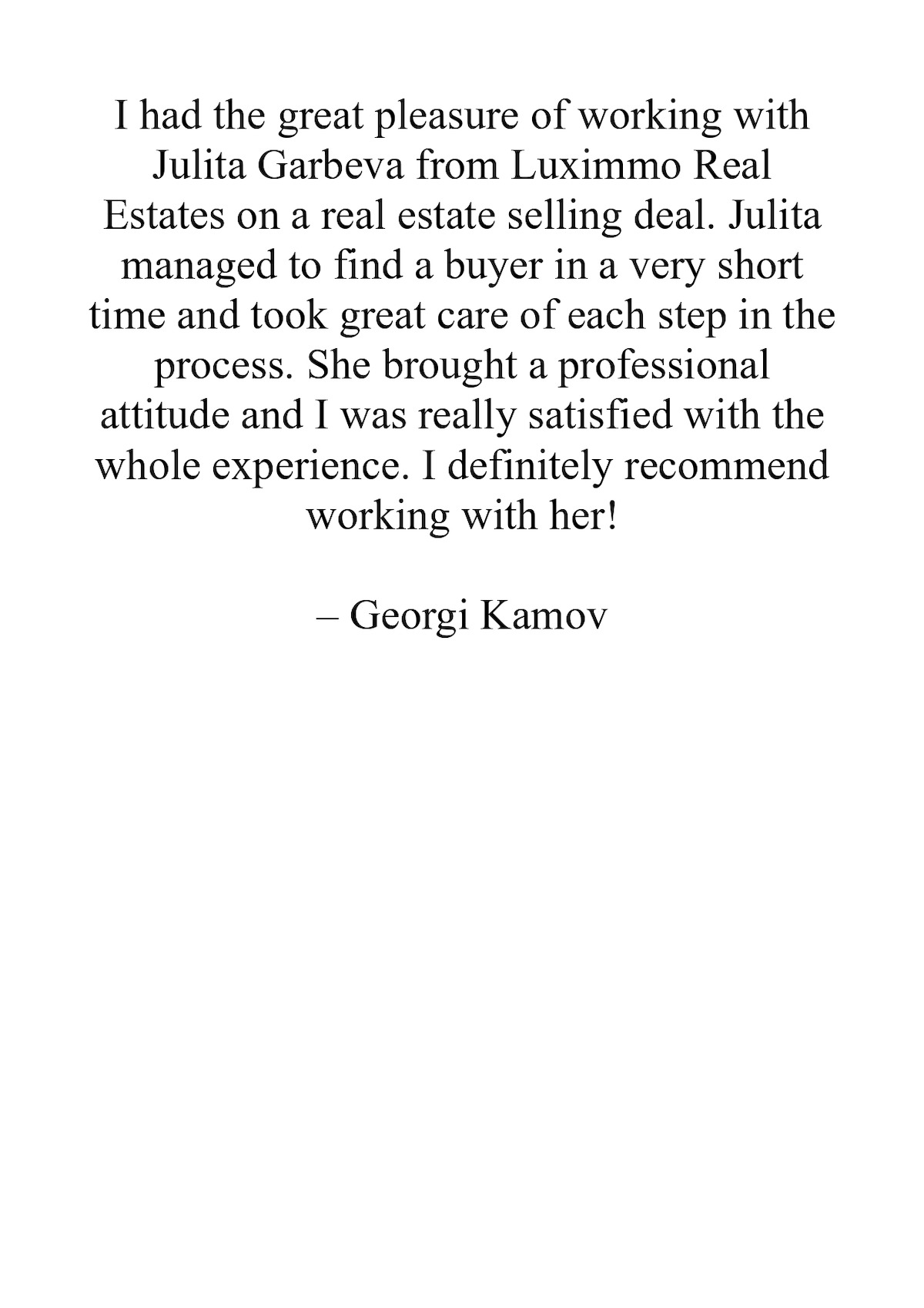 Yulita deals with marketing, sales and customer service of the project companies “Tidar Bulgaria” and through the years she worked as a personal associate at the National Assembly of Bulgaria. In LUXIMMO Yulita is responsible for sales and rentals of properties in the capital. Clients feel comfortable with her when choosing a home, because of her extreme law, technical and administrative experience which allows her to be of help for finding suitable property until the deal is closed, no matter how hard it is. She likes cases because they provoke her to be creative and to look for simple solution outside the box.