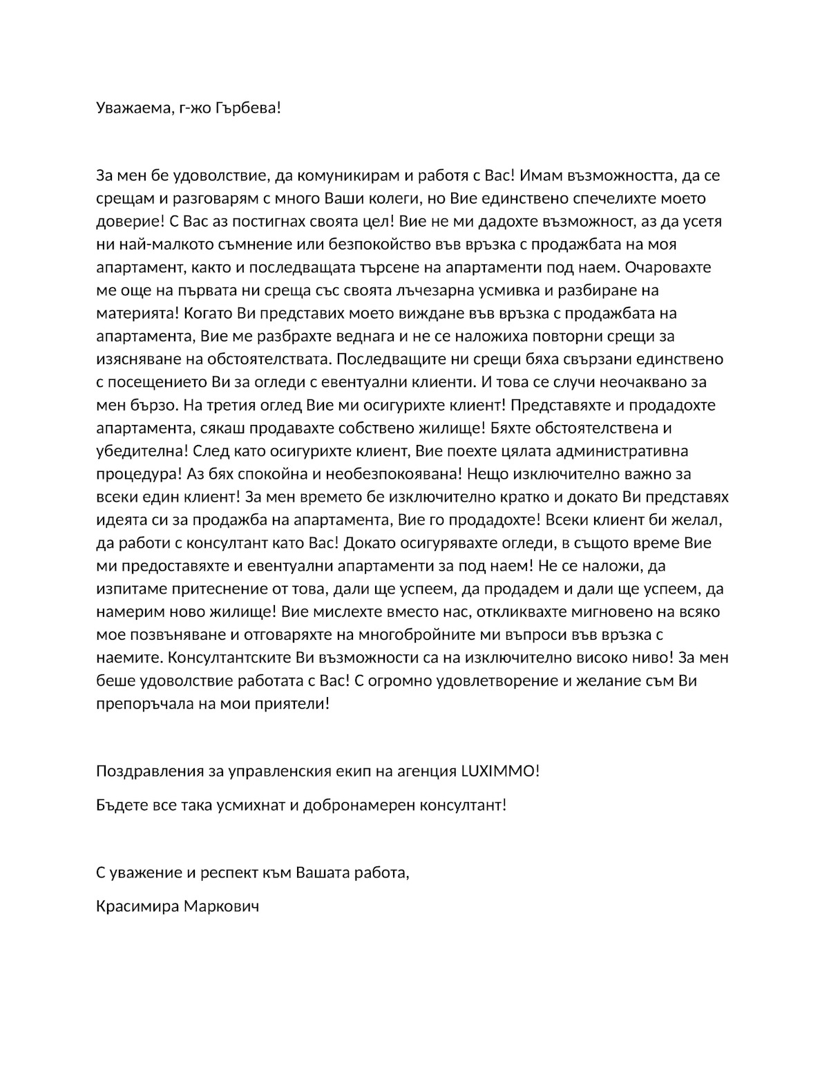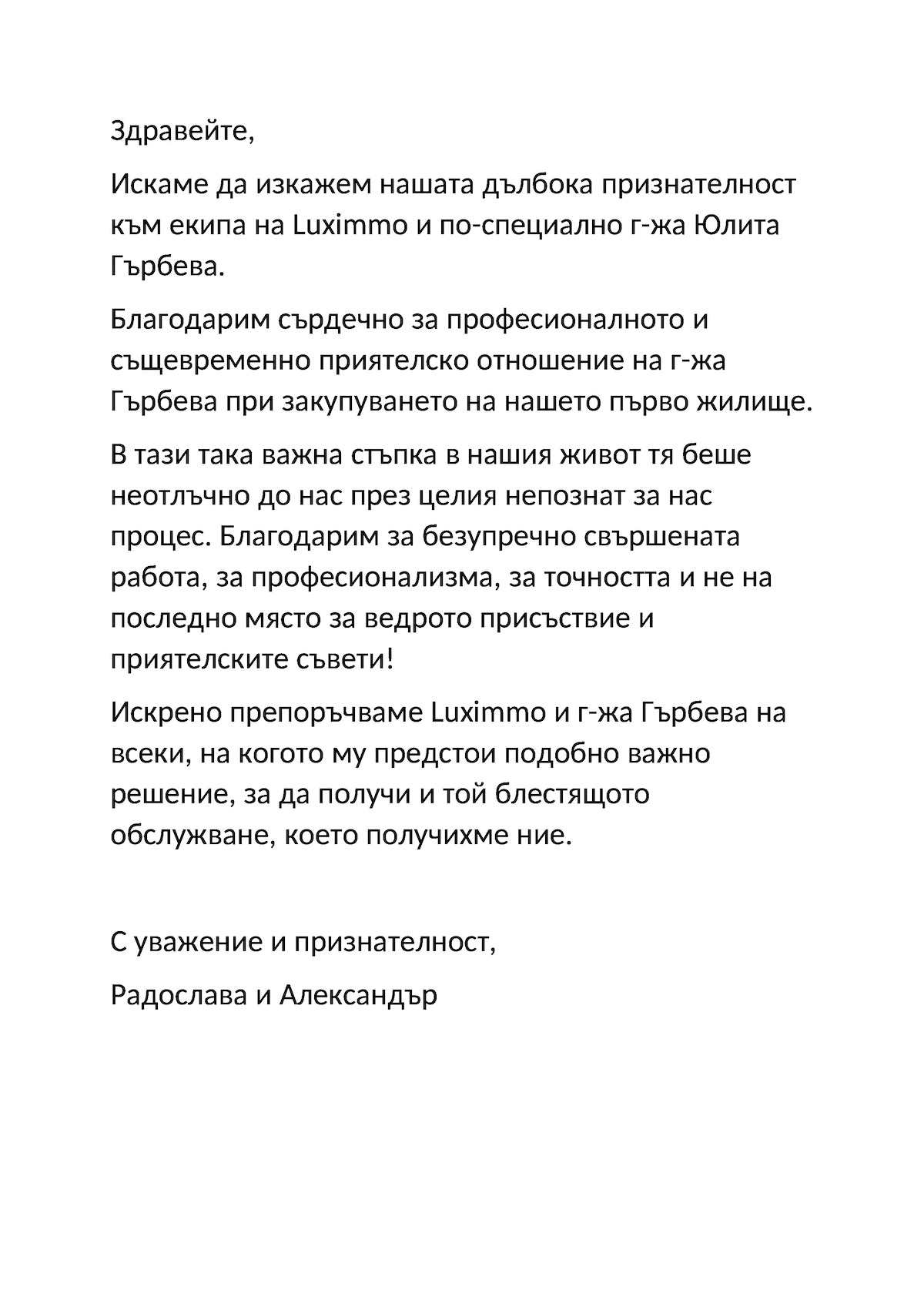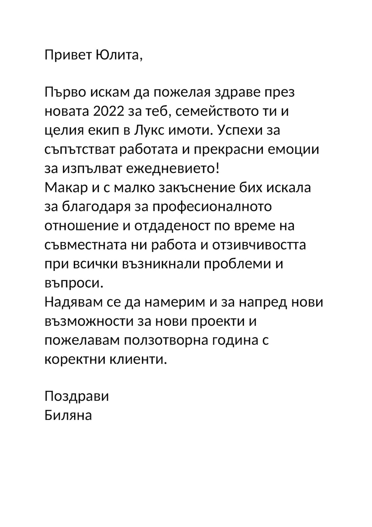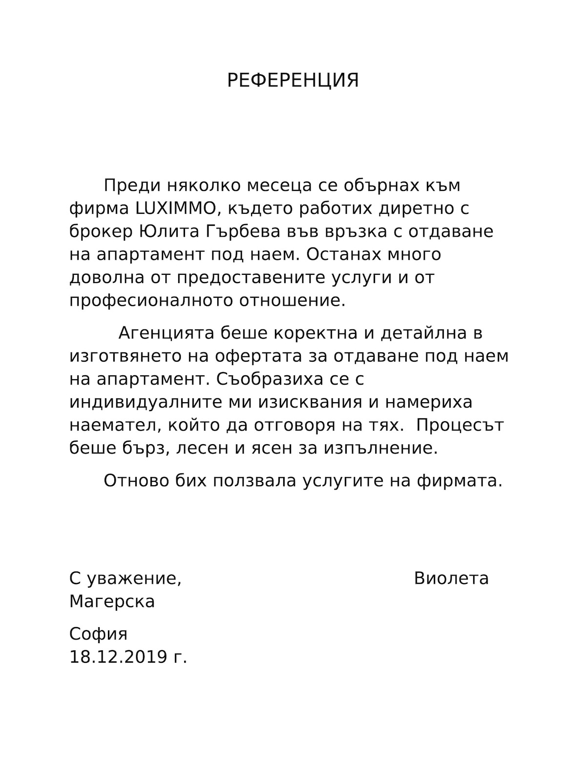 Yulita deals with marketing, sales and customer service of the project companies “Tidar Bulgaria” and through the years she worked as a personal associate at the National Assembly of Bulgaria. In LUXIMMO Yulita is responsible for sales and rentals of properties in the capital. Clients feel comfortable with her when choosing a home, because of her extreme law, technical and administrative experience which allows her to be of help for finding suitable property until the deal is closed, no matter how hard it is. She likes cases because they provoke her to be creative and to look for simple solution outside the box.