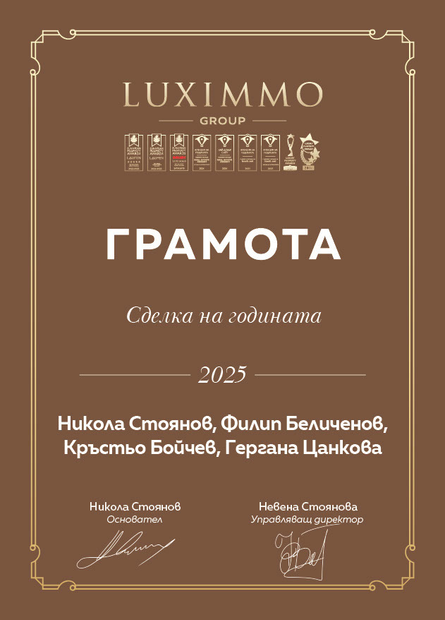 When joining LUXIMMO Gergana started out as a luxury real estate agent. Over the years, Dr. Tsankova has proven herself to be an extremely proactive professional in her documentary knowledge and ability to comprehensively cover all activities related to realty transaction. This valuable knowledge allowed her to take the position of director of LUXIMMO ACADEMY in May 2023, which trains young specialists who become part of the largest luxury real estate agency in Bulgaria.