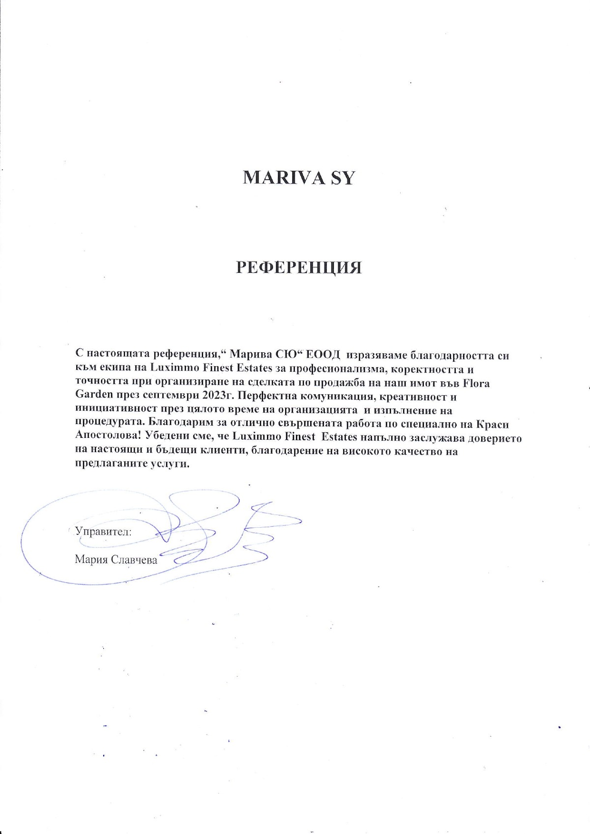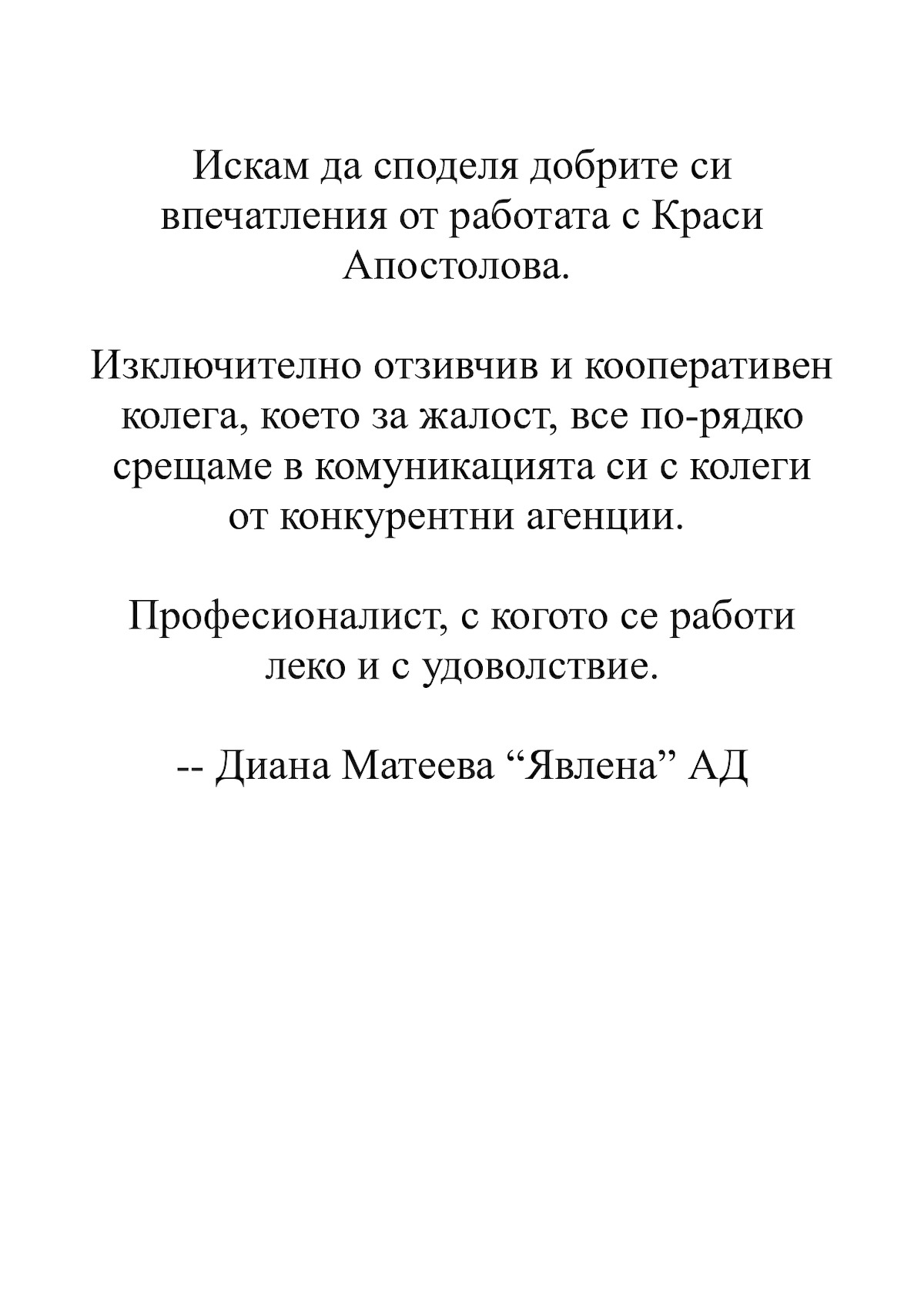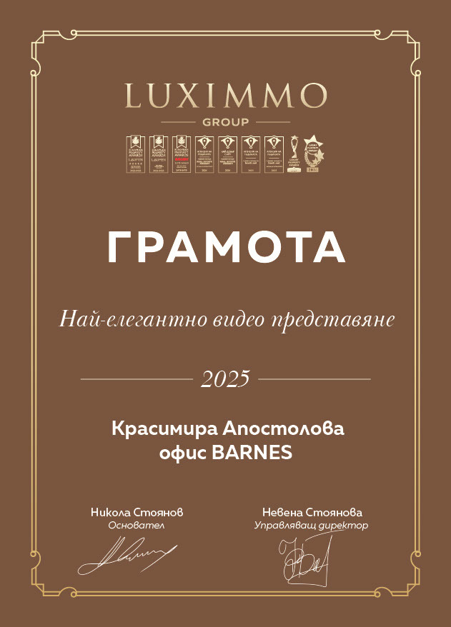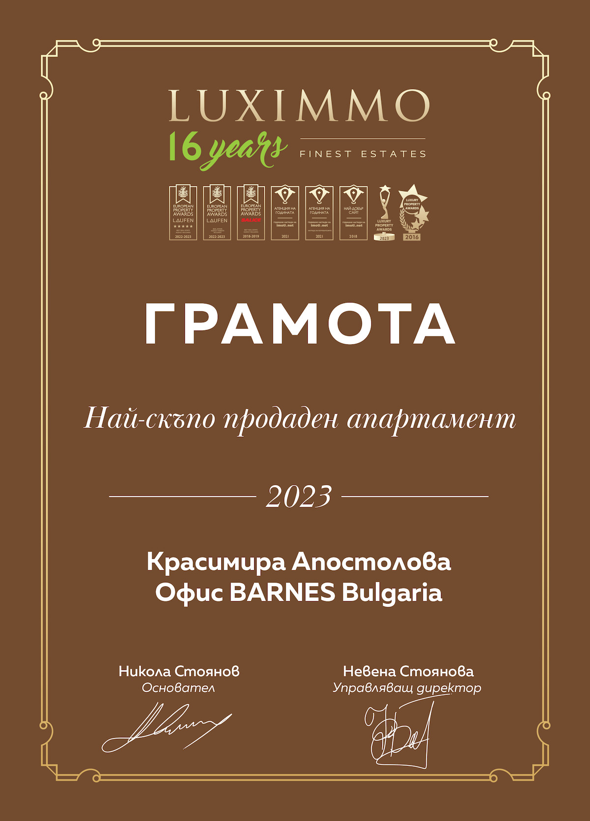 Thank you very much to Krasimira Apostolova for being part of our "apartment buying" adventure. He was with us from the first step and wanted us to get the best for our budget, not just sell us something for a commission. I would work with her again in the future.