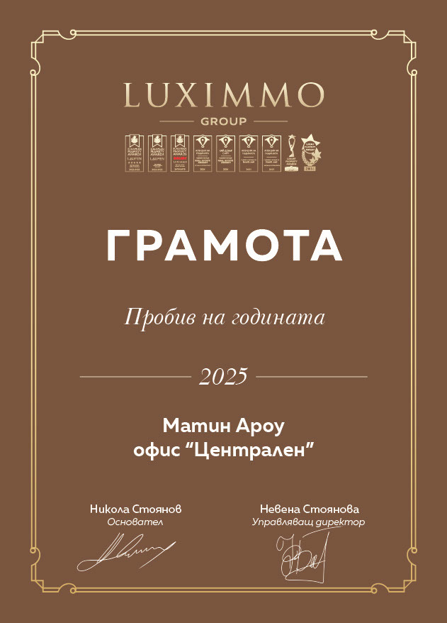 Sincere thanks for the professional and humane attitude of our broker Matin Arrow from Suprimmo/ Luximmo and the Supercredit team and especially Tsvetomir Nikolov for their assistance and professionalism towards us during the preparation and completion of the transaction.