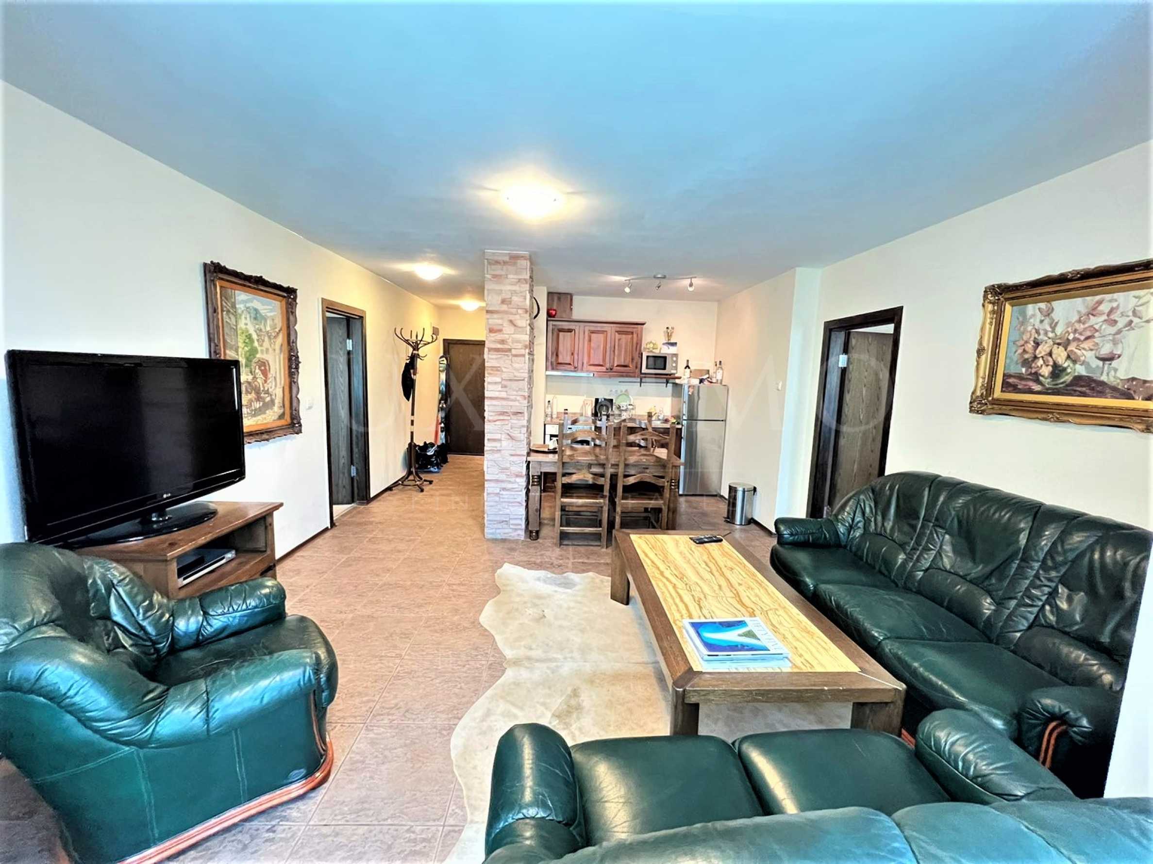 Luxuriously furnished three-room apartment with two bathrooms for sale in a residential building meters from the ski lift in Bansko.