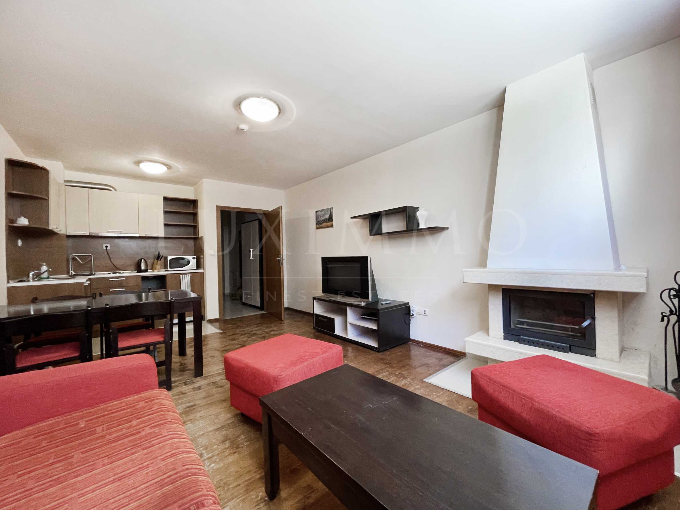 We are pleased to offer you this two-bedroom apartment with an area of 82 sq.m. The property offers a comfortable living room with fireplace and dining area, kitchen, two bedrooms, corridor, bathroom with toilet. The apartment is perfect for living and renting. It is located on the first floor and has a southwest facing.