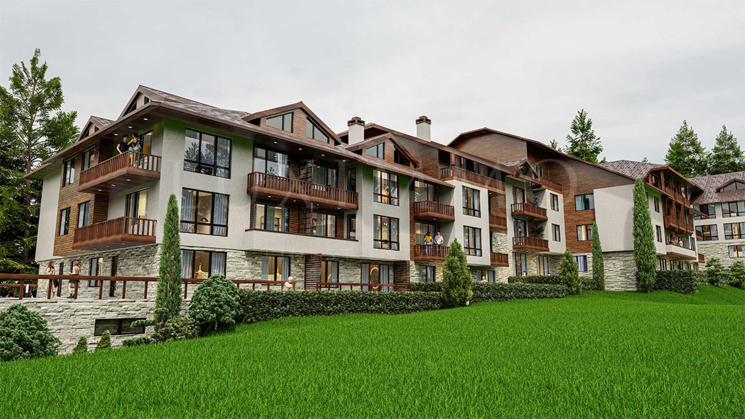 The project was implemented with contemporary Alpine architecture and a concept for a secure family environment with access control, with courtyards and green spaces for recreation, with the biggest advantage of the project being a modern SPA center with a beautiful Japanese garden.