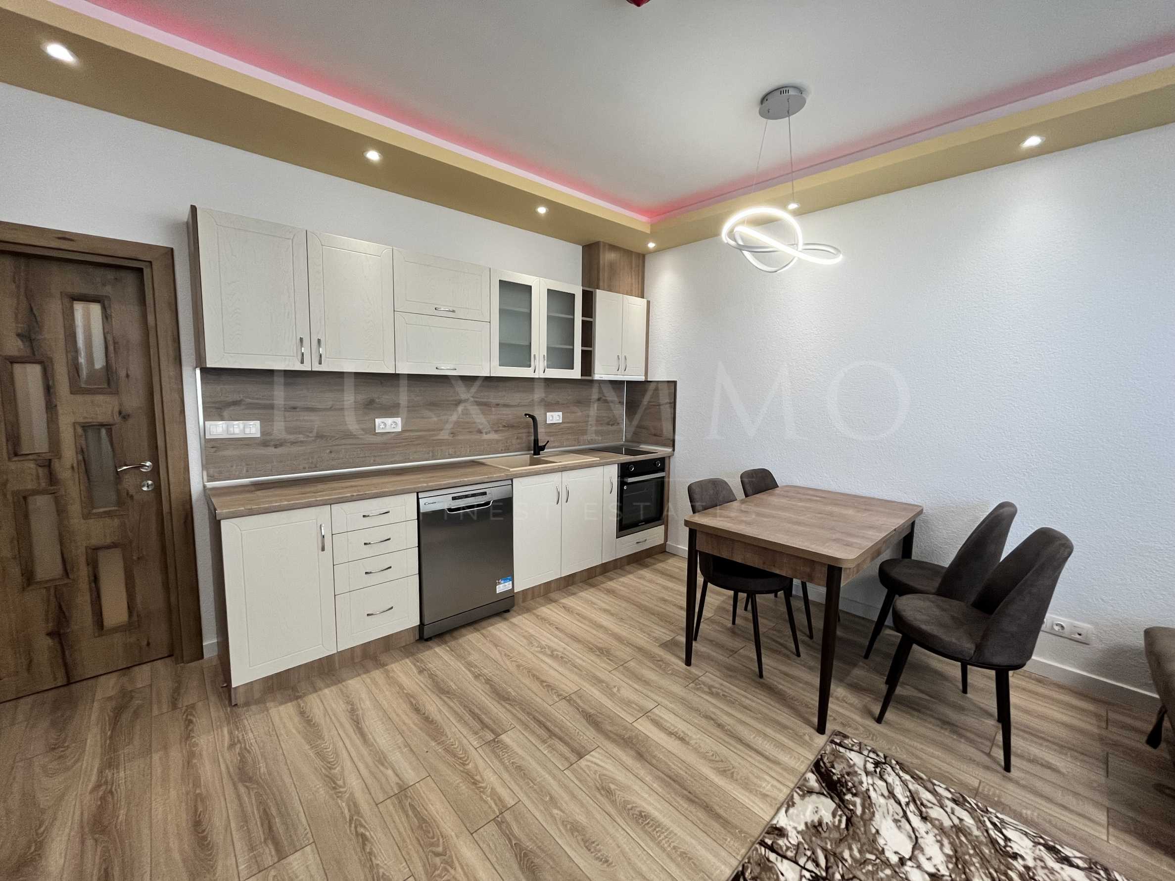 We present a two-room apartment with a panoramic view over the city and Lake Vaya, located in an ultra-modern complex, in a building with Act 16 in the "Slaveykov" quarter.
