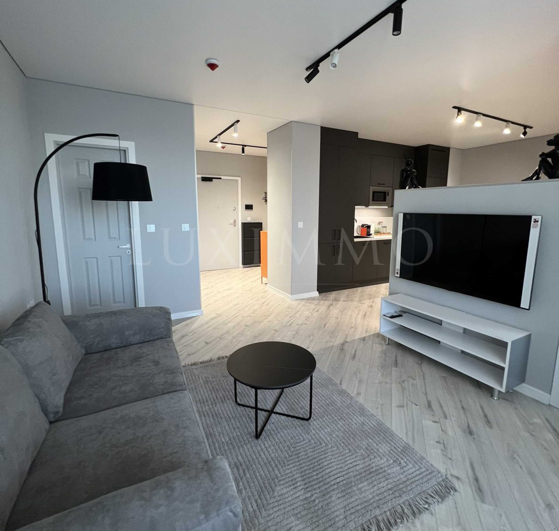 The apartment is offered stylishly furnished with brand new furniture. The kitchen is built-in. It is equipped with a microwave oven, hotplates, fridge/freezer, washing machine with dryer, dishwasher, coffee machine. There is a separate dining area with a table and chairs.