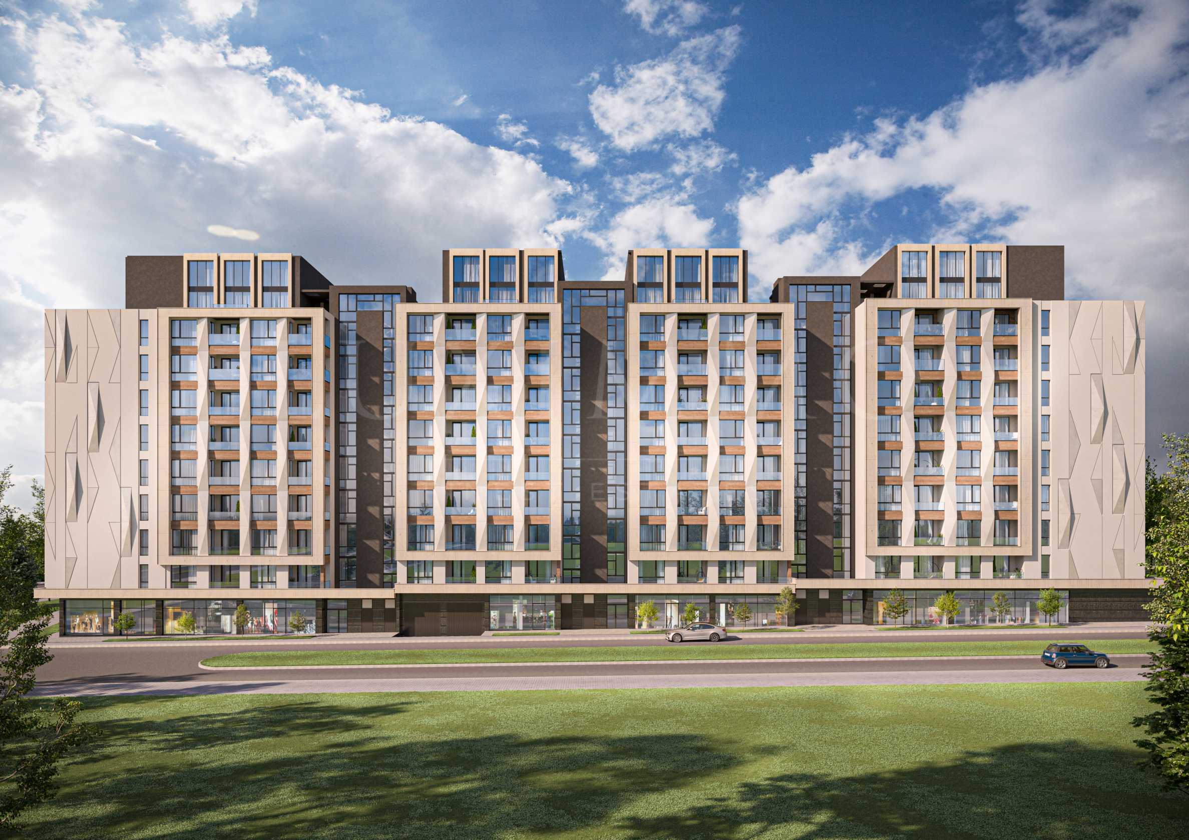 Spread over 9 floors and a ground floor, 159 properties are designed in the building: two-room, three-room and four-room apartments, as well as outdoor and underground parking spaces and garages. The properties are sold in the stage of completion according to BDS.
