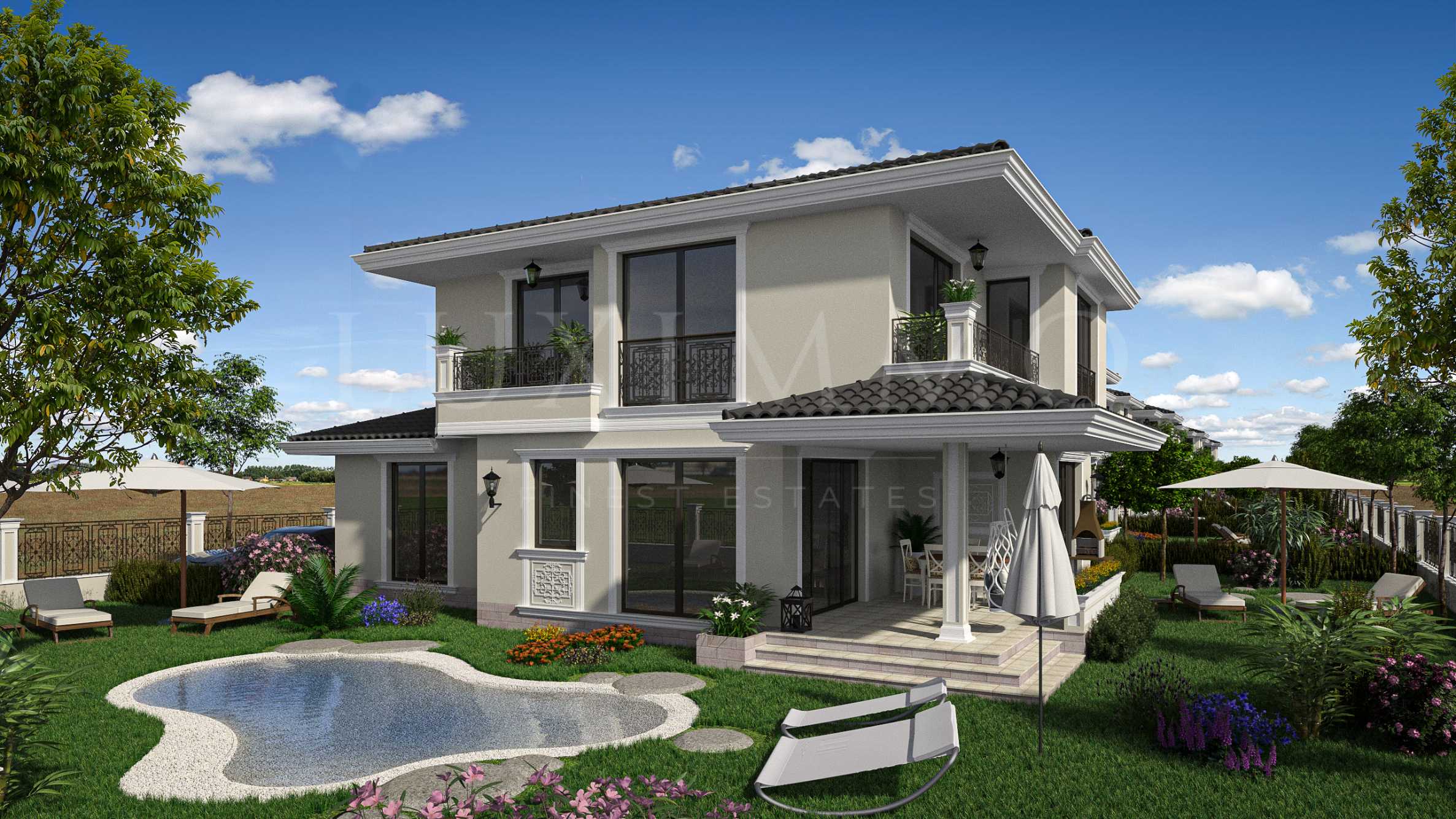 The complex consists of 8 two-story houses, each with its own yard and parking for two cars, with the option of choosing between three types of houses. The layouts are comfortable, with 3 bedrooms on second levels, with the house type 1 having an additional, fourth bedroom on level-1. The villas are designed in a Mediterranean style.