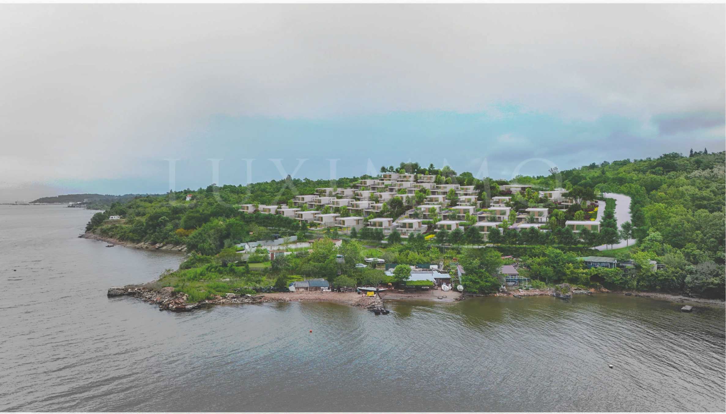 The plot is situated above a small bay, with a spacious panorama of the sea and the city. The natural elevation provides sea views from every house and emphasizes the natural beauty of the terrain.