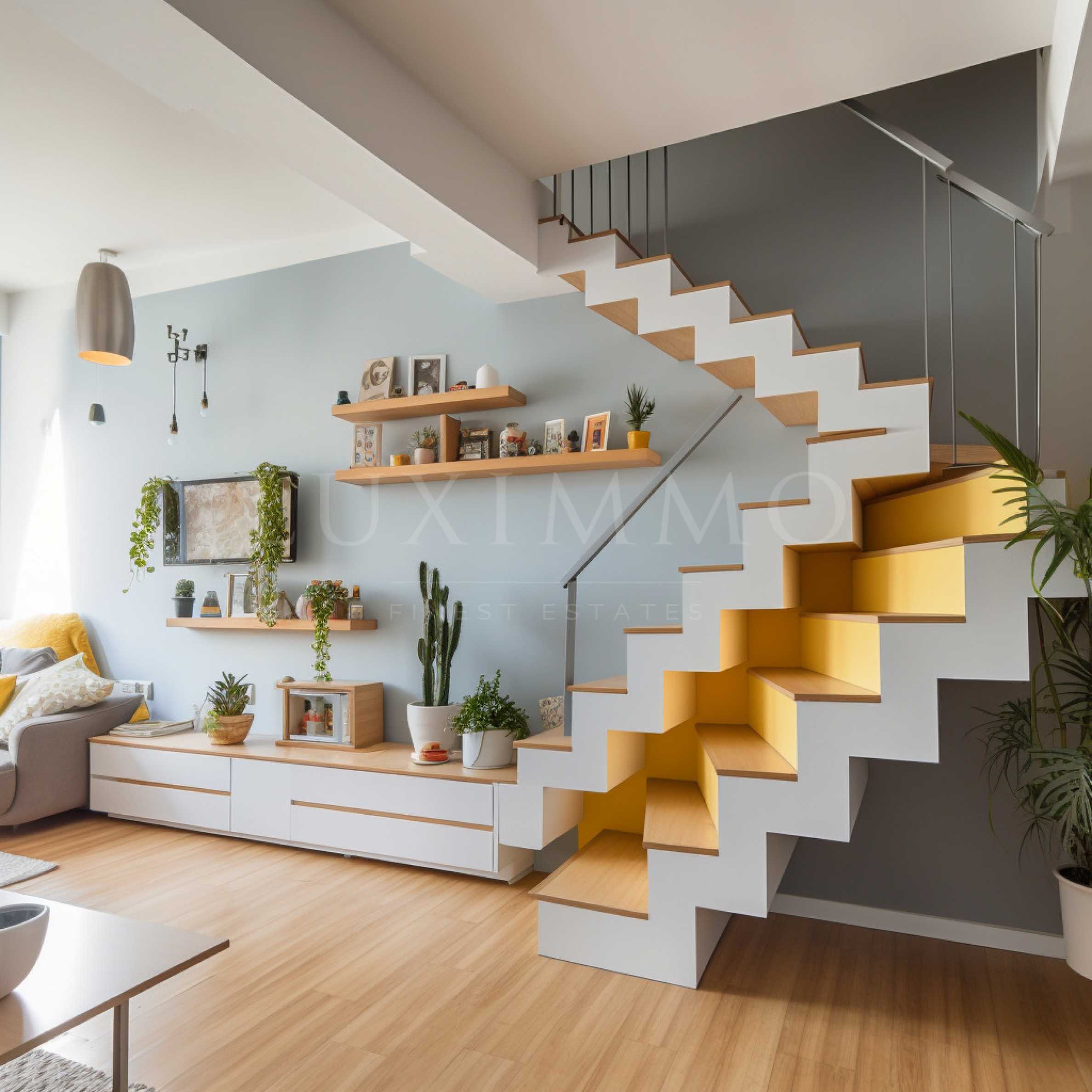 The apartment of 141.94 m2 is located on the third and fourth residential floors.