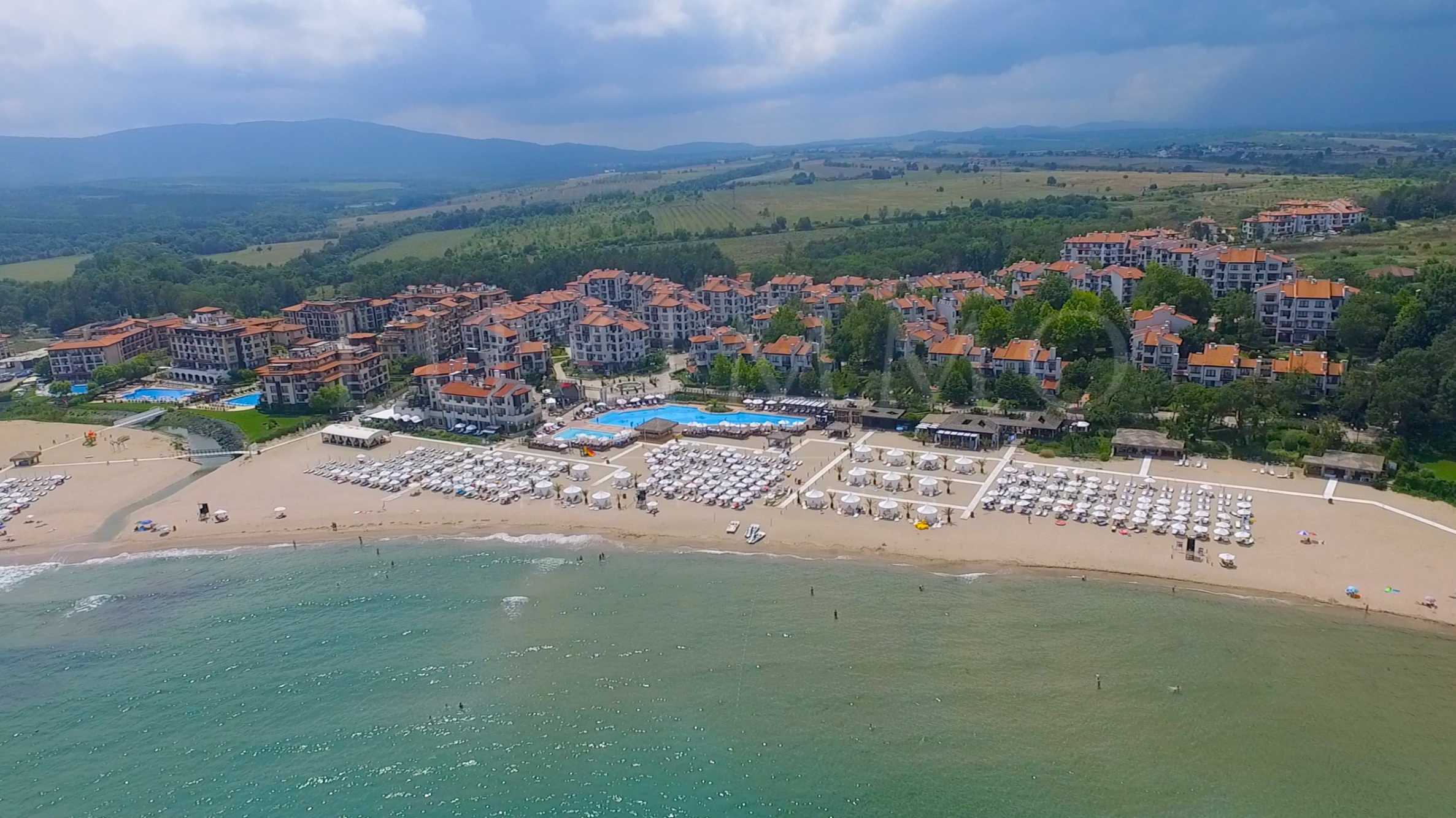 We are pleased to present to your attention an one-bedroom, modernly furnished apartment with an area of 66.63 sq.m., located on the fourth floor of the five-star complex Oasis Resort & Spa, the winner of the prestigious award "Building of the Year 2009". The complex is located on absolute first line from the sea, on Oasis Beach, 2 km from the seaside resort of Lozenets and 8 km from the town of Tsarevo. The nature reserve Ropotamo and the greenery and fresh air of National Park Strandzha are situated in close proximity.