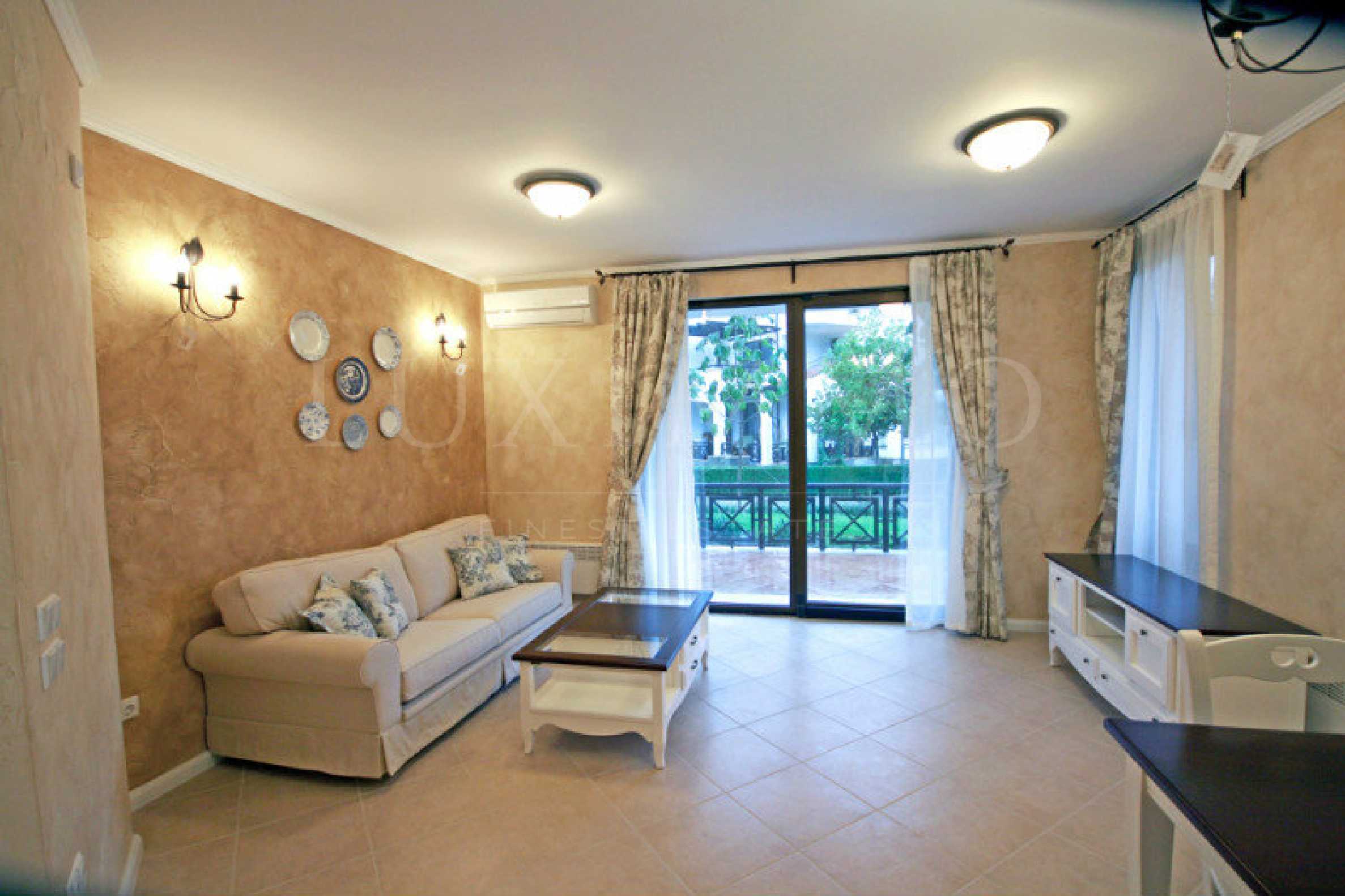 The apartment is with area of 79.98 sq. m , which is situated on the 1 floor and consists of the following: open plan kitchen with dining and living room, 1 bedroom, bathroom with toilet, and а veranda with pleasant views to the sea and the complex park. The apartment is for sale fully furnished with luxurious furniture and the bathrooms are fully equipped. It is ready to live in or rent out.