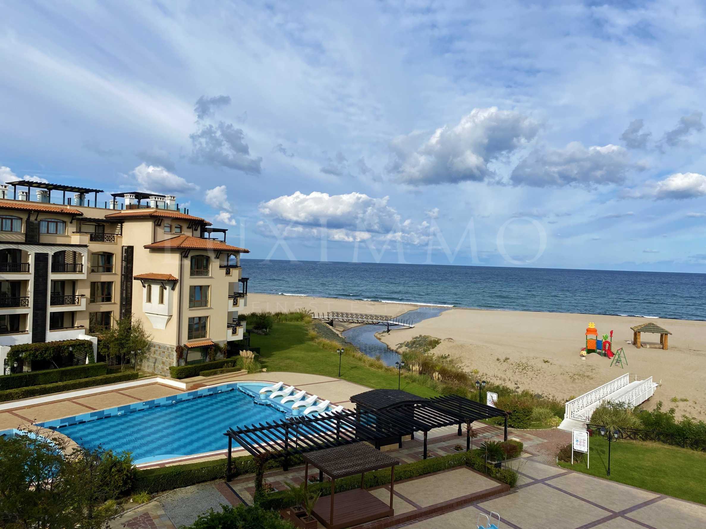 We present a two-room apartment with a frontal view of the beach and the sea, in an elite complex on "Oasis" beach, in the popular Lozenets resort.