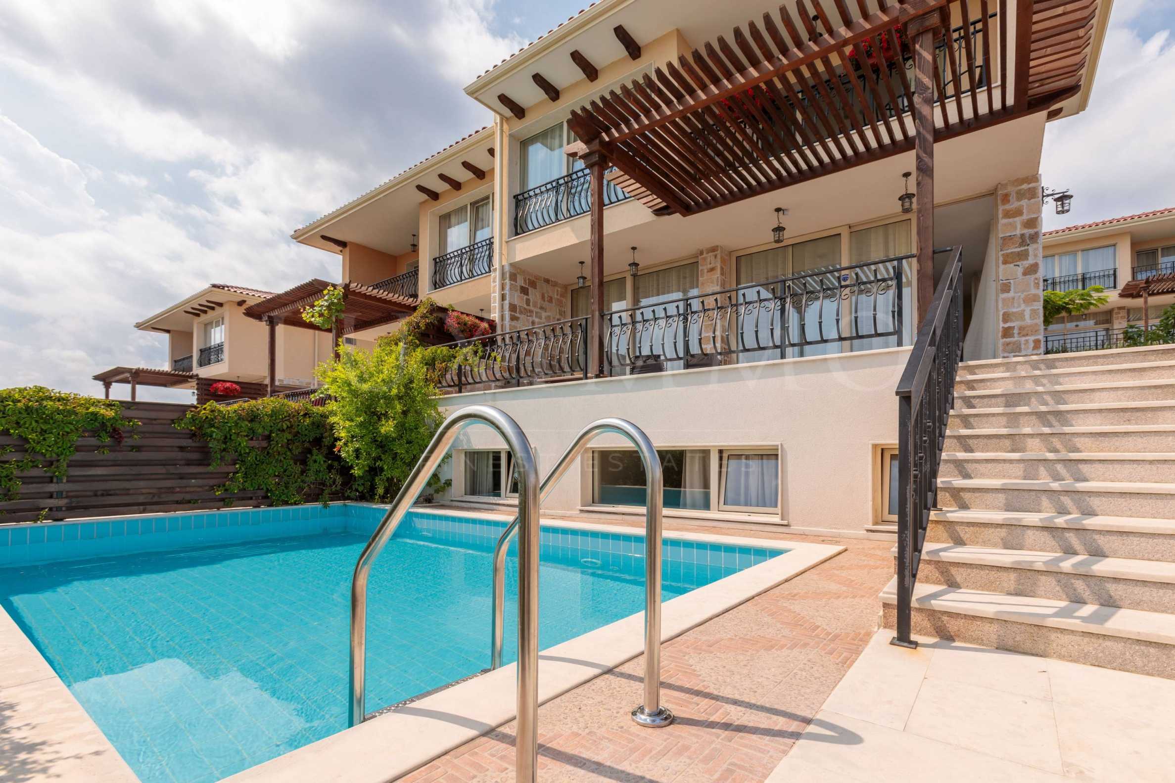 We offer you this house with a total area of 173 m2. It was constructed in 2015. The property has air-conditioners. A standard air-conditioner - also available. Aluminium window frames, external insulation and laminate flooring are available in the property. The property is connected to electricity, communal water supply, communal sewage system and mains drainage. Some of the other available facilities that you will certainly consider important include: a balcony, a parking space, a storage room, a toilet, an underground parking, a veranda, a sauna, a swimming pool, a cable tv, internet, a secure entry system and a wi-fi. From the inside you will be able to enjoy wonderful sea views.