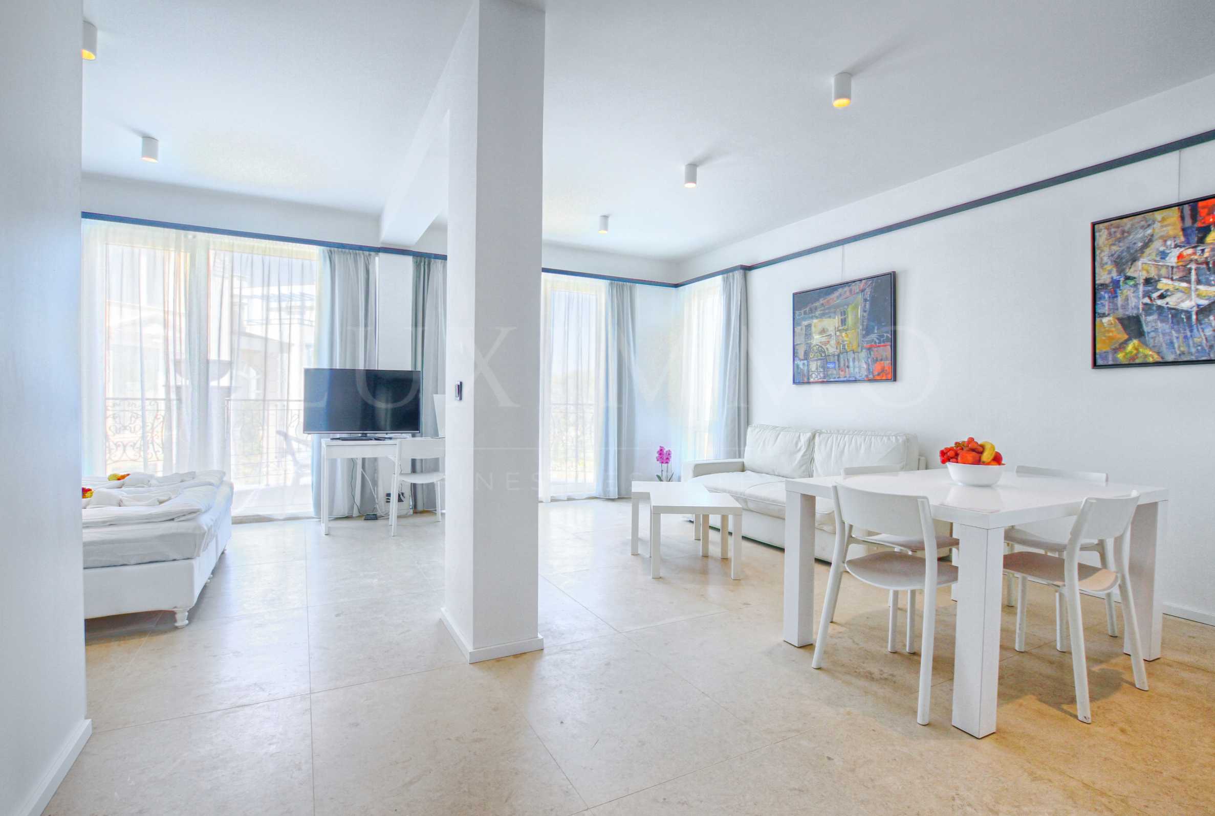 We offer for rent a luxuriously furnished studio with elegant design and modern equipment for the summer season 2022, located on the seafront in the "Belle ?poque Beach Residence" in Lozenets.