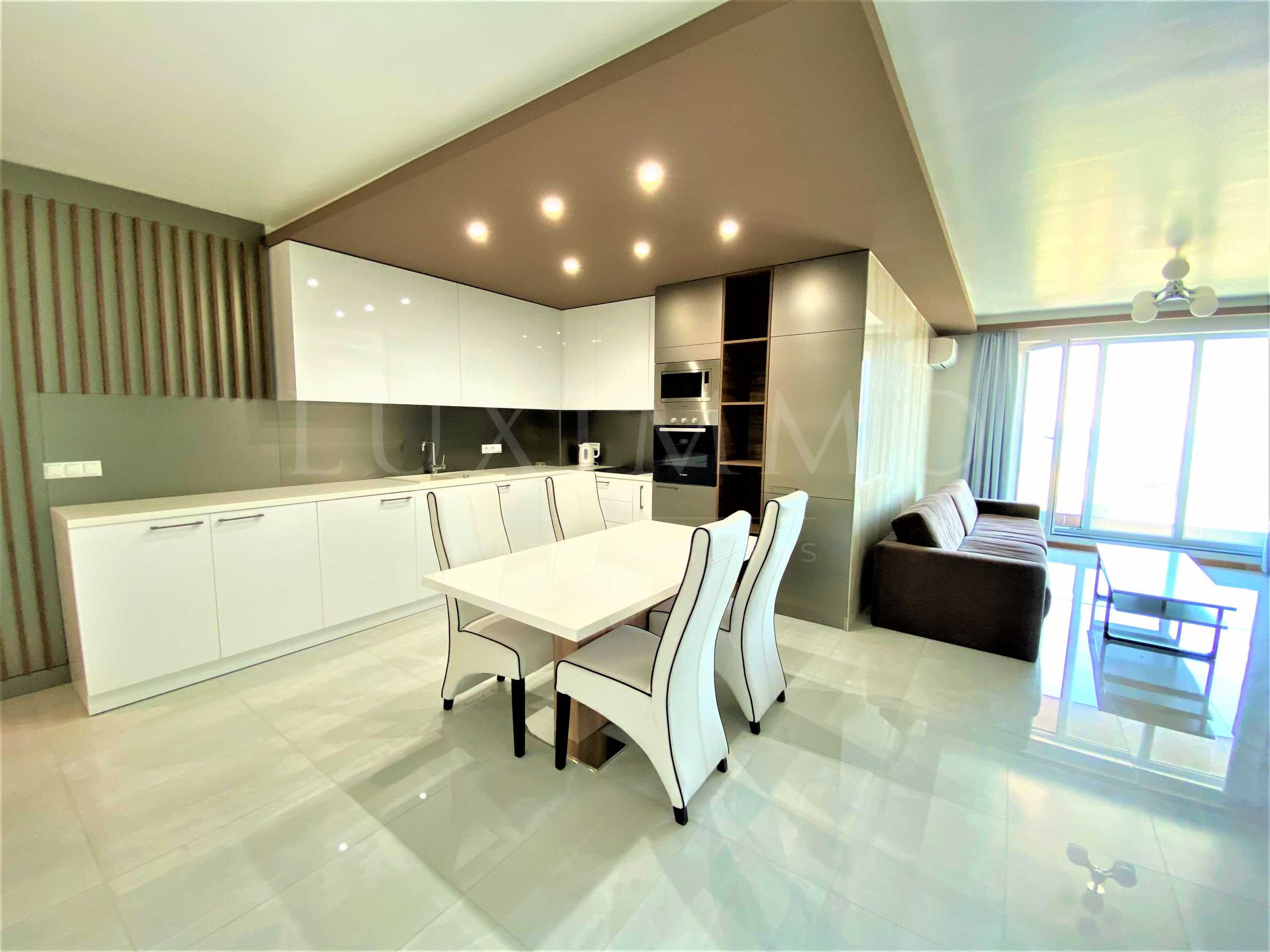 The property has an area of 89.09 m2, of which the net area is 80.93 m2. It consists of a living room with a kitchen, a bedroom, a bathroom with a toilet and two terraces, one of which has views of the nearby sandy beach . The property offers a spacious and light-filled living room with a separate kitchen, with first-class built-in appliances: stove - Bosch, microwave oven - Eurolux, ceramic hob and hood, refrigerator.