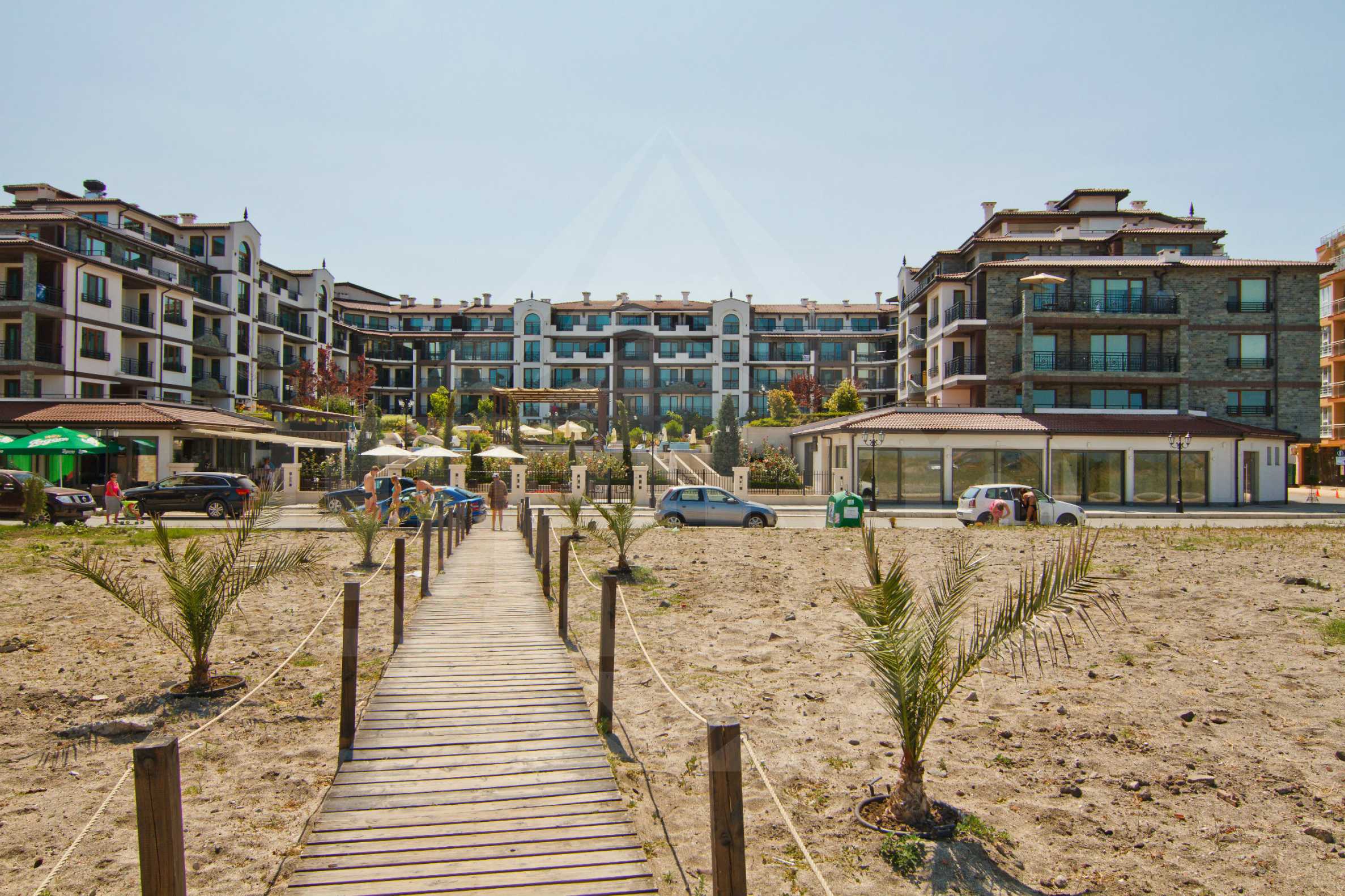 Bulgarian Rose Gardens is a wonderful holiday resort, which is located near the beach in Pomorie and the five-star "Grand Hotel Pomorie", the Sanatorium and the Pomorie salt lake. Placed meters away from the beach, the complex corresponds to the four-star hotel requirements for comfort and has many amenities to secure a carefree and relaxing holiday. It is characterized by stylish architecture of interesting balconies and large French windows, natural materials and wonderful decorations. The views from the resort are towards the garden, the town and the sea.
