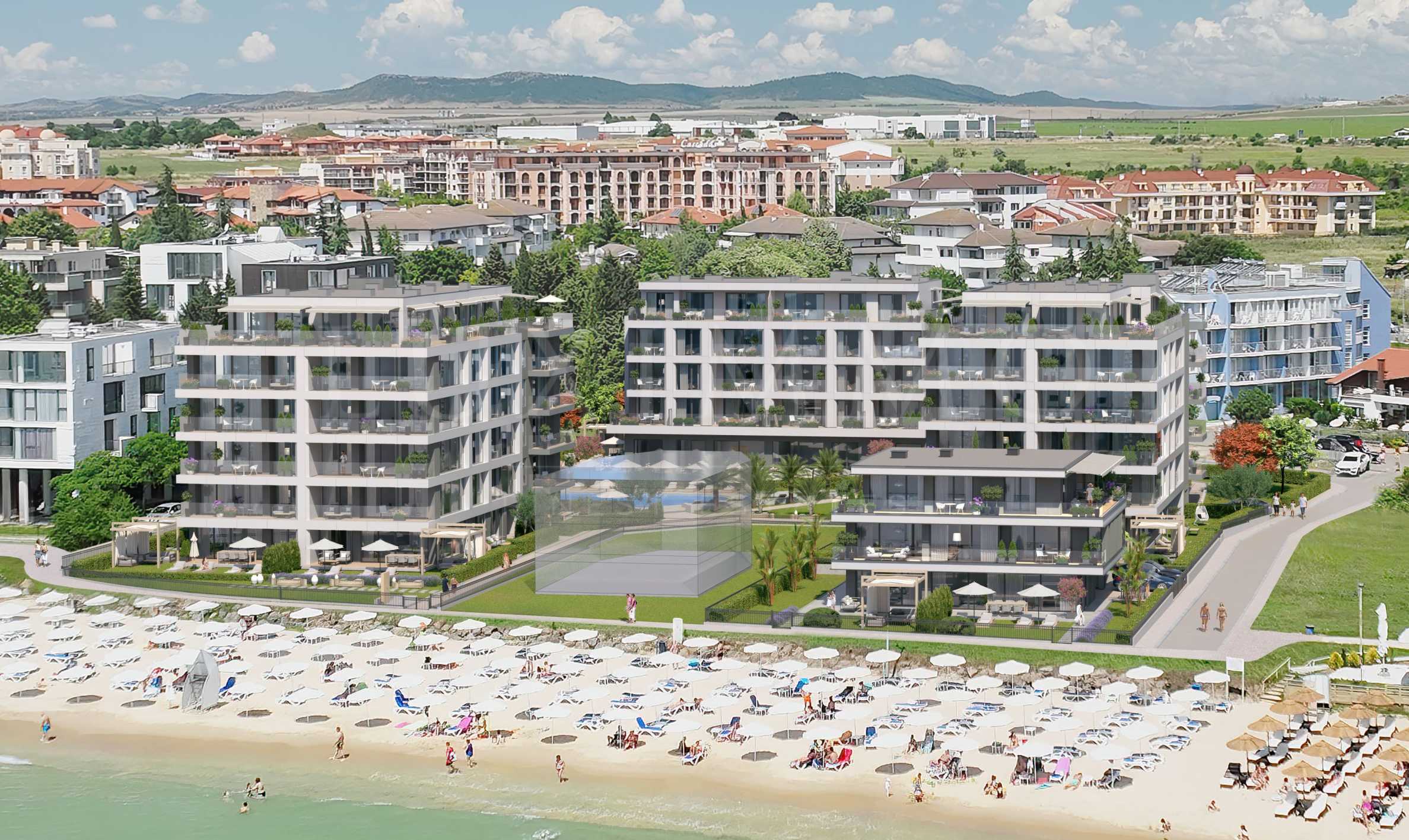 We present a three-room apartment for sale, part of a new complex with a pool, garden and direct access to the beach, located on the first line in Ravda.