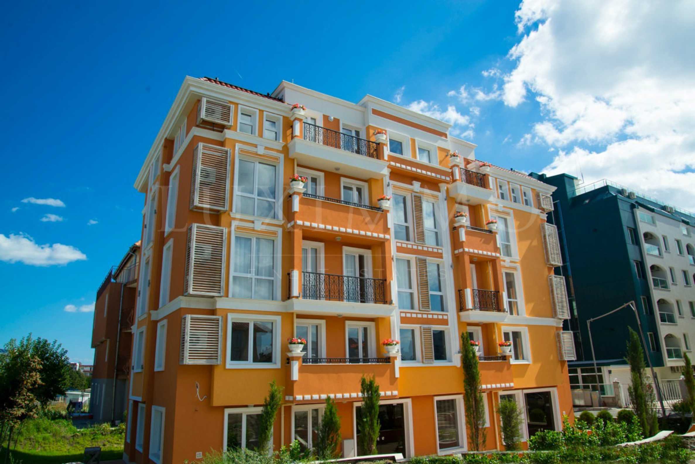 Riviera Garden enjoys a pleasant Mediterranean architecture and serene atmosphere to ensure an unforgettable holiday throughout the year. The building consists of five floors, on the ground floor are placed the reception desk and the lobby bar, as well as the restaurant and the fitness center. On the next four floors are allocated 16 apartments, where the choice is between one-bedroom and two-bedroom ones. The view, which is revealed from the apartments, is towards the park or the swimming pool.