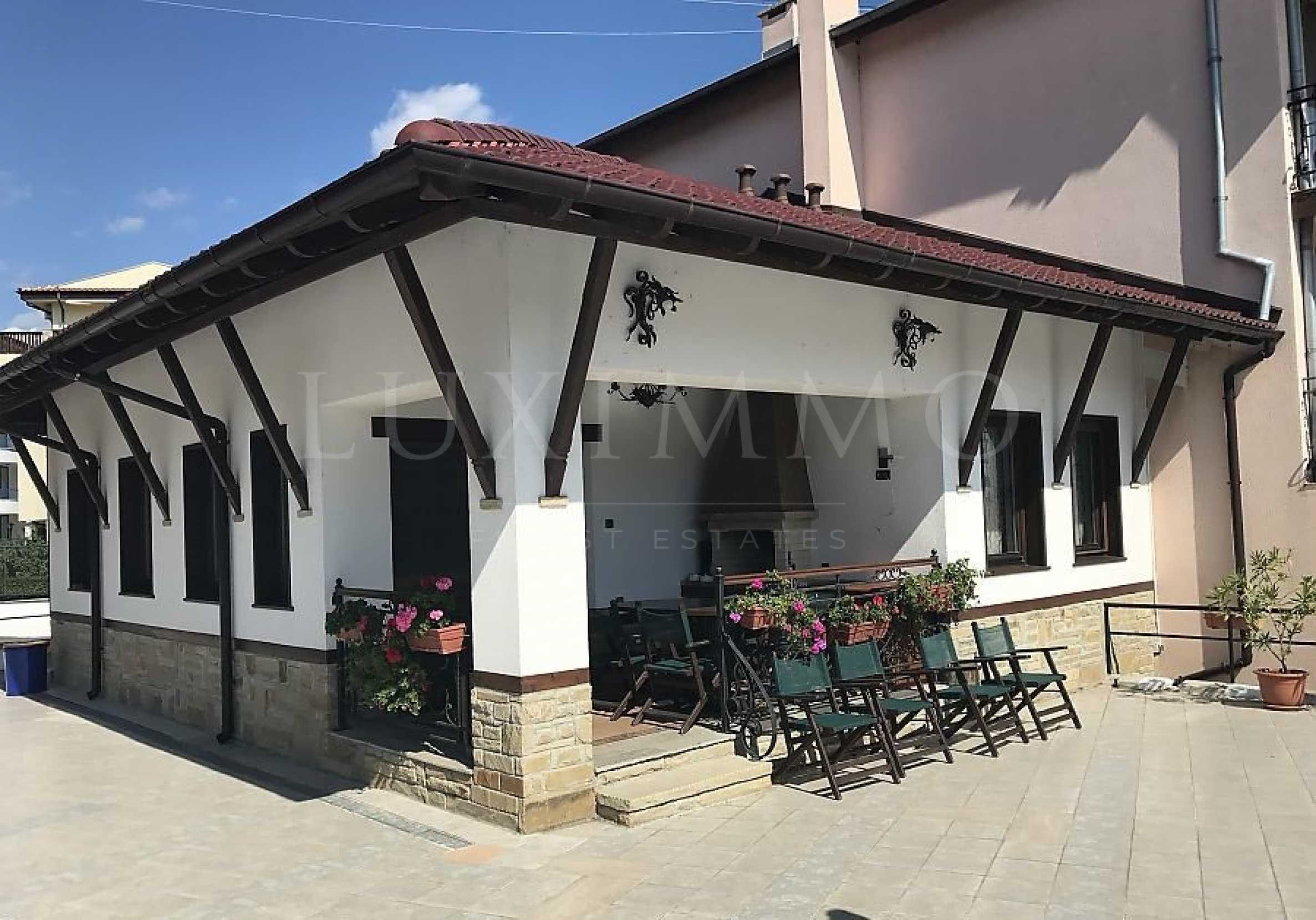 We offer you this cottage with a total area of 85 m2 which is situated in a gated development. It was constructed in 2016 and has luxury common parts. The property has air-conditioners and fireplace. An air-conditioning system and an inverter air-conditioner - also available. Brick walls, dobile glazing, external insulation, interior doors, internal insulation, latex painted walls, solid walls, tiled flooring, upvc window frames, wall-to-wall carpet and walls with wallpaper are available in the property. The property is connected to electricity, communal water supply, water, communal sewage system and mains drainage. Some of the other available facilities that you will certainly consider important include: a bathroom with toilet, a garage, an internal bathroom, an internal toilet, a swimming pool, a cable tv, internet and a wi-fi. From the inside you will be able to enjoy wonderful sea views, swimming pool views and views to inner garden.