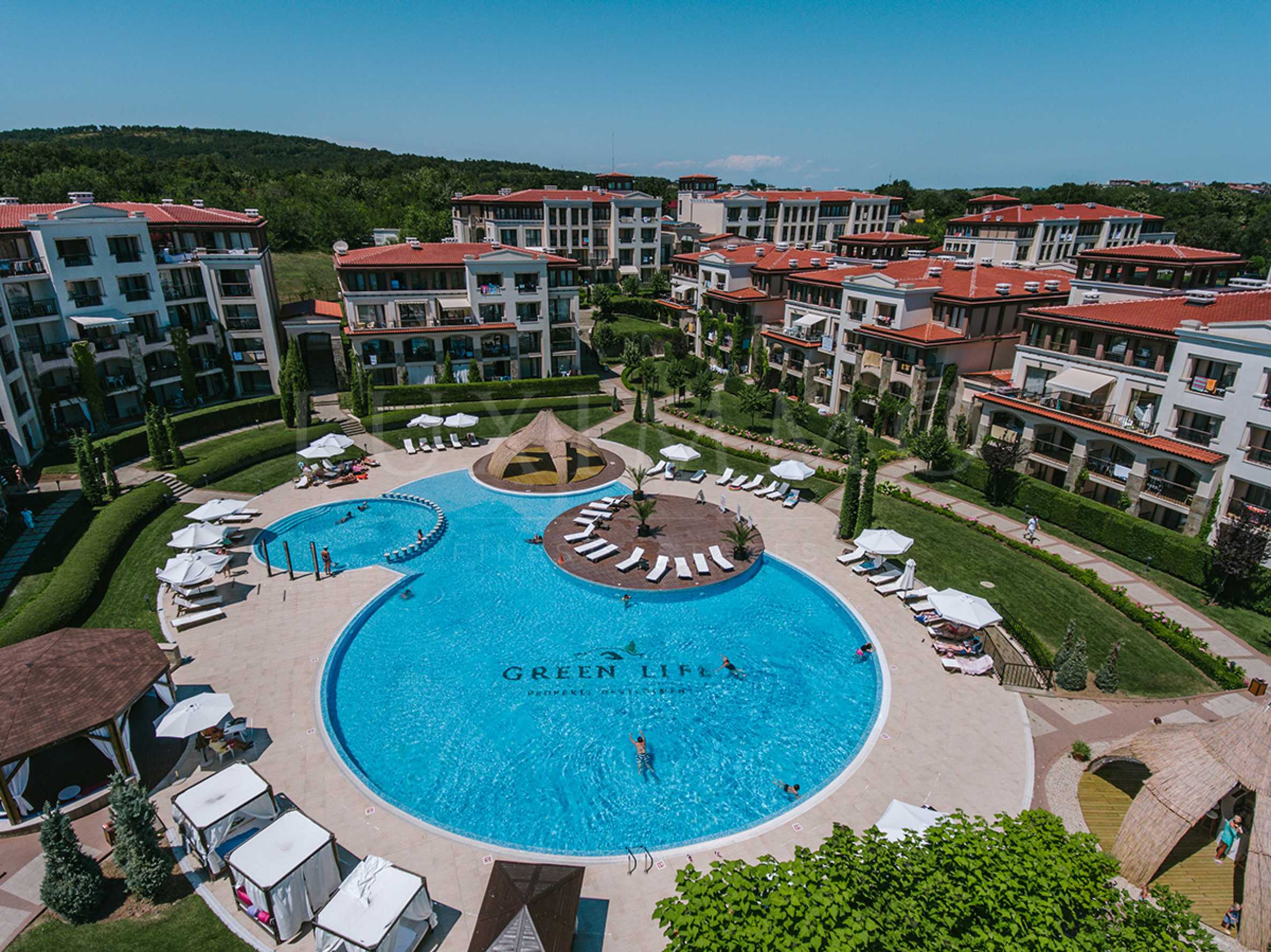 The property is for sale fully finished. The apartment has a favorable southeast exposure. It consists of a living room with kitchenette, 2 bathrooms / WC, 2 bedrooms and a balcony. It is located on the 3rd residential floor. The property is a wonderful choice for both personal use and investment, with the ability to generate income during the summer season. Future owners will enjoy quick access to the beach and all the amenities of the complex.