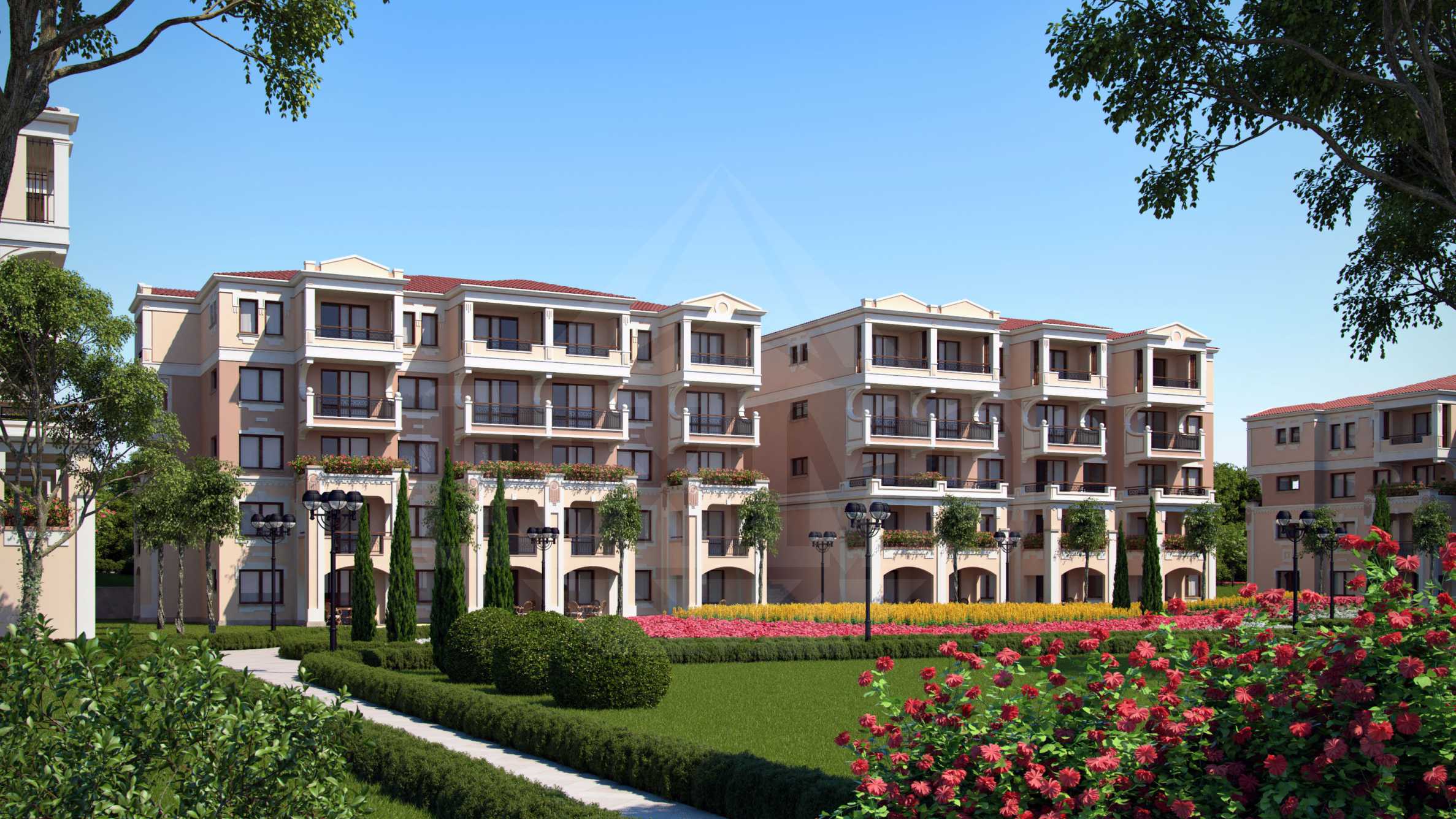 Green Life Paradise Gardens is located in the quietest part of the complex near the sports zone. It is decorated in a Mediterranean style, following some typical Bulgarian architectural elements and has its own infrastructure and lush greenery. The complex has lovely panoramic views towards the forest and the beach, a feeling that creates peace and harmony.