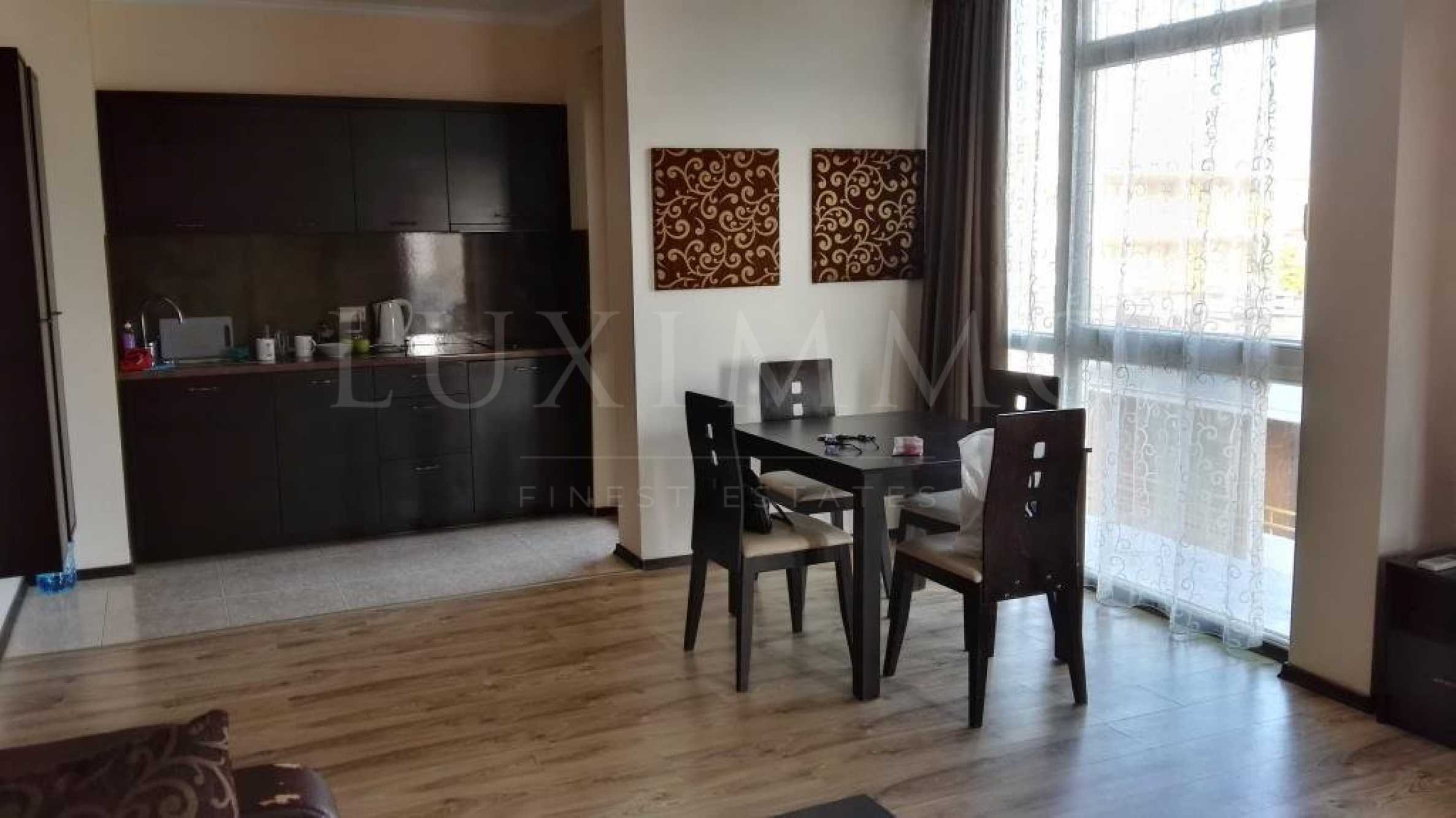 We offer you this 1-bedroom apartment with a total area of 68 m2 which is situated in a gated development. The property is supplied with air-conditioners. A standard air-conditioner - also available. Interior doors, laminate flooring and latex painted walls are available in the property. The property is connected to electricity, communal water supply and communal sewage system. Some of the other available facilities that you will certainly consider important include: a lift, a cable tv, internet and a wi-fi. From the inside you will be able to enjoy wonderful beach views and sea views.