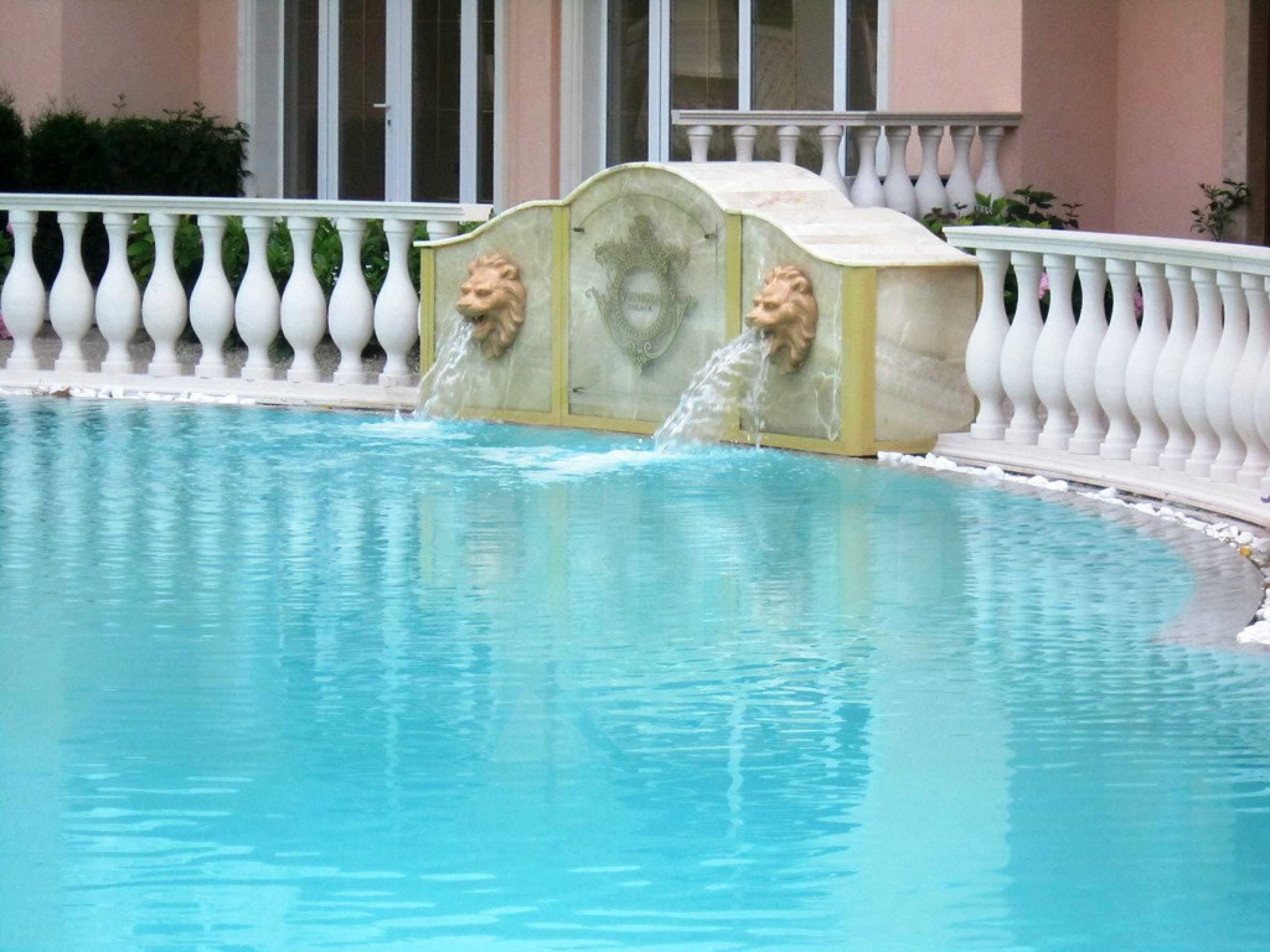 We offer you this luxury townhouse which is situated in the luxury development Dawn Park Royal Venera Palace. It is located among beautiful pine forest and set in the central part of Sunny Beach. The complex is placed 200 m from the beach and the sea. Nearby is to be found the main shopping street, where are placed some of the most elegant restaurants and bars in the resort. Within close distance is also the old town of Nessebar, famous for its historical monuments and rich cultural heritage.