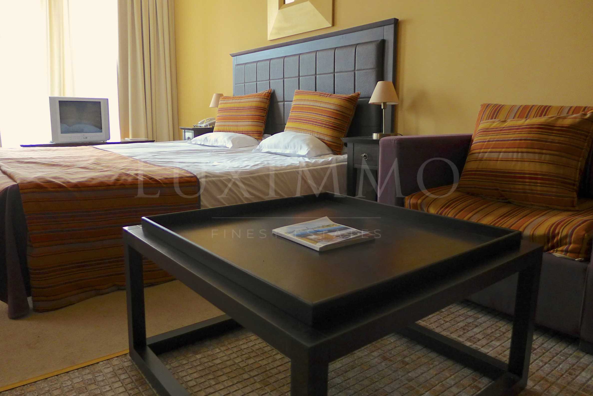 We offer you fully furnished and equipped studio, which is a part of a luxurious and elegant gated complex Royal Beach Barcelo. The complex is located in the heart of the most modern Bulgarian summer resort Sunny Beach, 50 meters from the beach. The sea-front in Sunny Beach combines the exotic nature with modern construction, which makes it a preferred place for recreation and entertainment. The building complex has a unique combination of modern architecture and mystical elements of the traditional Mediterranean art .