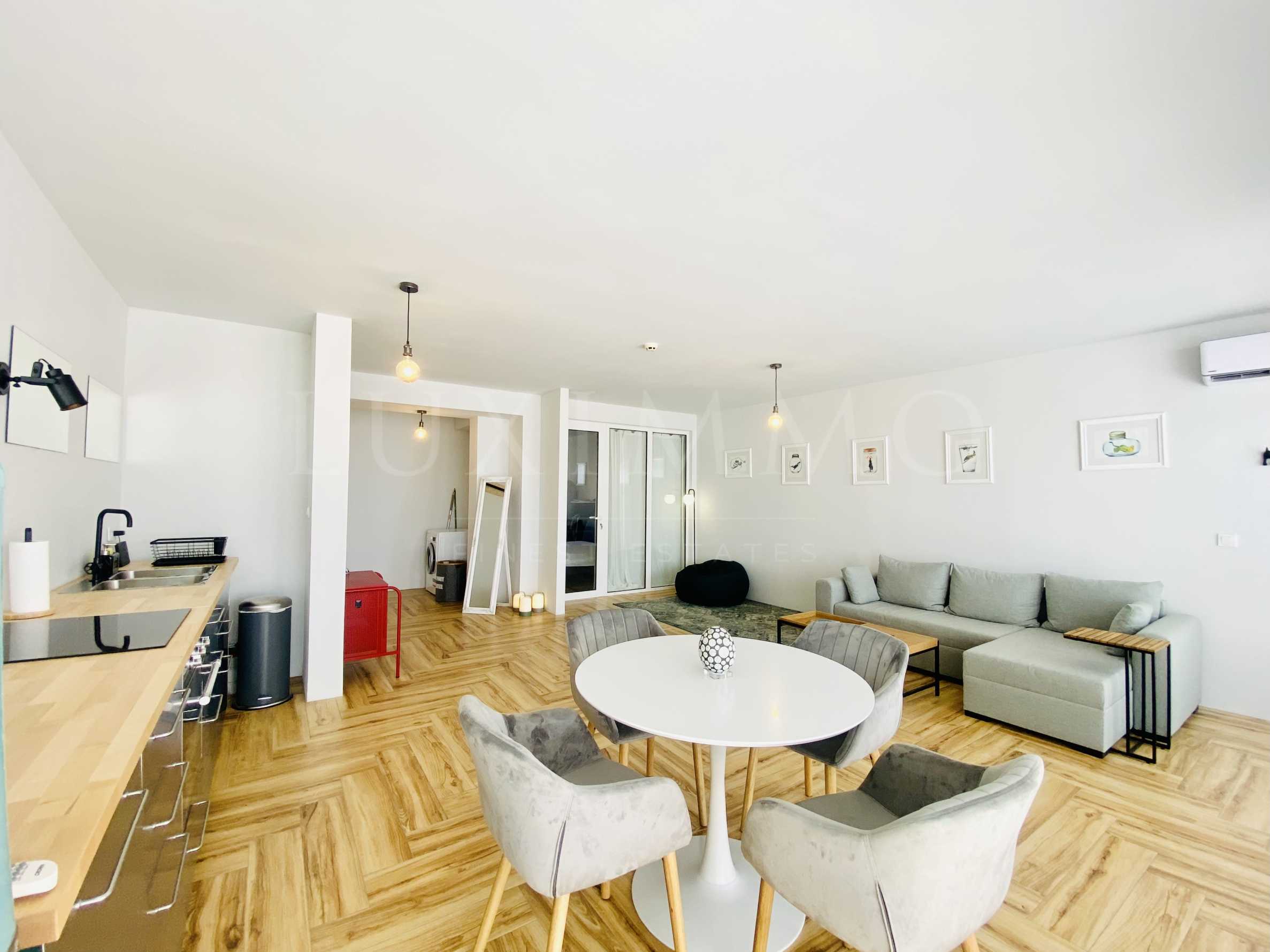 The property has been completely renovated, furnished and equipped with attention to the smallest details. It is located on the 1st floor of a total of 3, with a total area of 85.29 m2 and consists of a spacious living room with a dining room and a kitchen area, a bedroom, two bathrooms and a spacious veranda with a sea view.