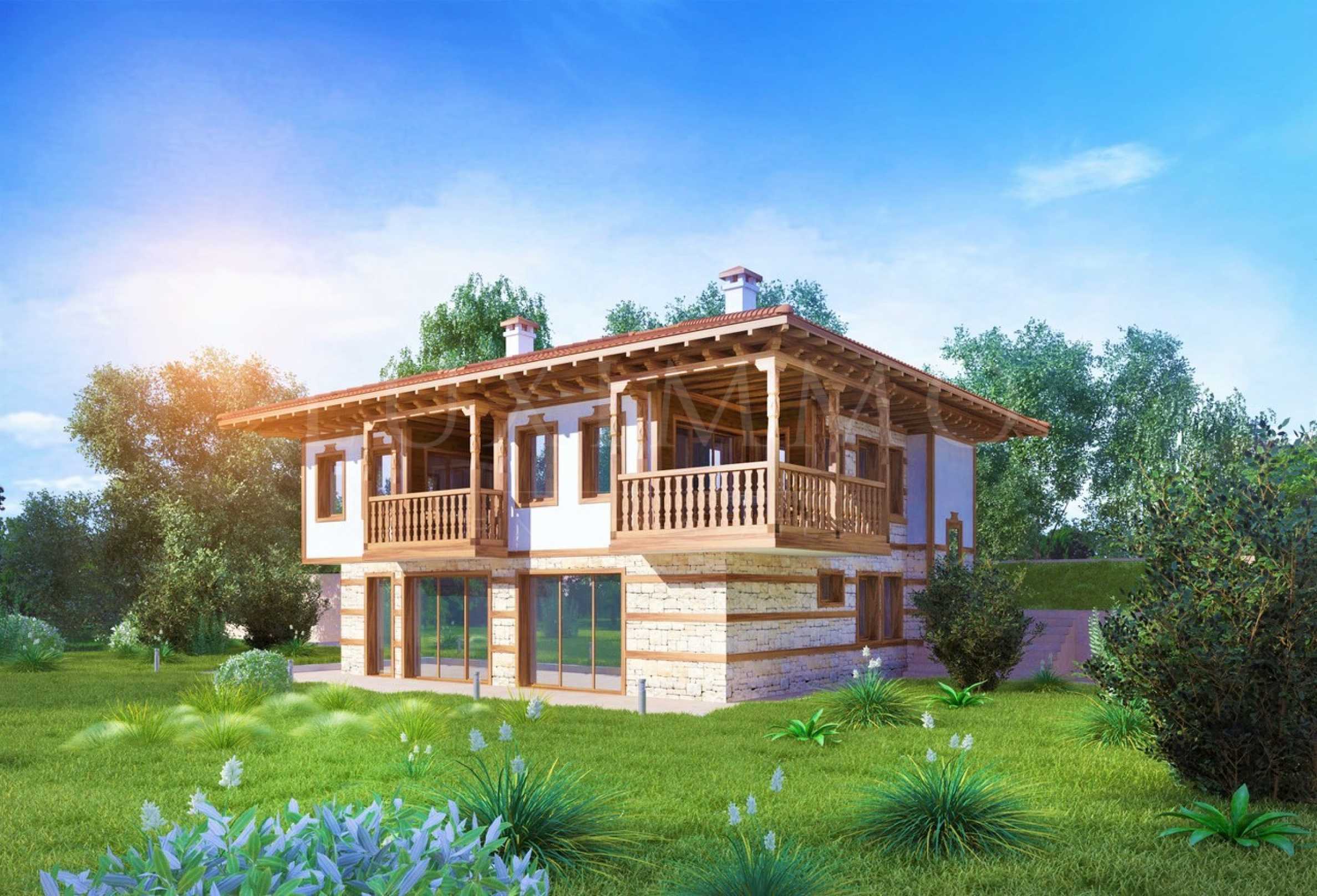 We present to you a charming house type "twin", for sale in a new, large-scale project of houses in traditional Bulgarian style, located among the greenery of the wooded area "Kassada" in Saint Vlas.