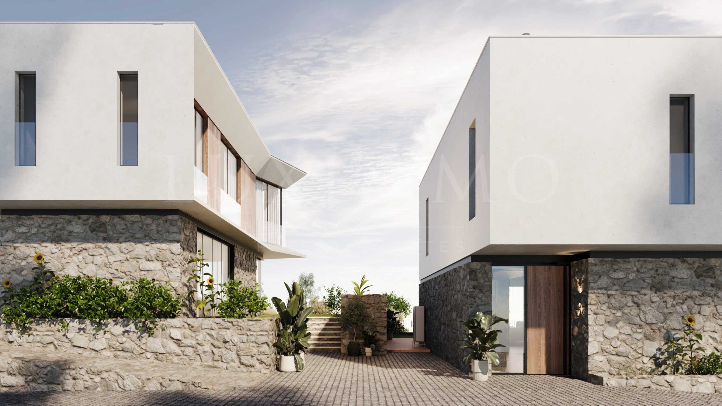 The complex is designed in a contemporary architectural style, with straight lines and futuristic accents. The houses have a modern and functional layout, on two floors, with separate landscaped courtyards.