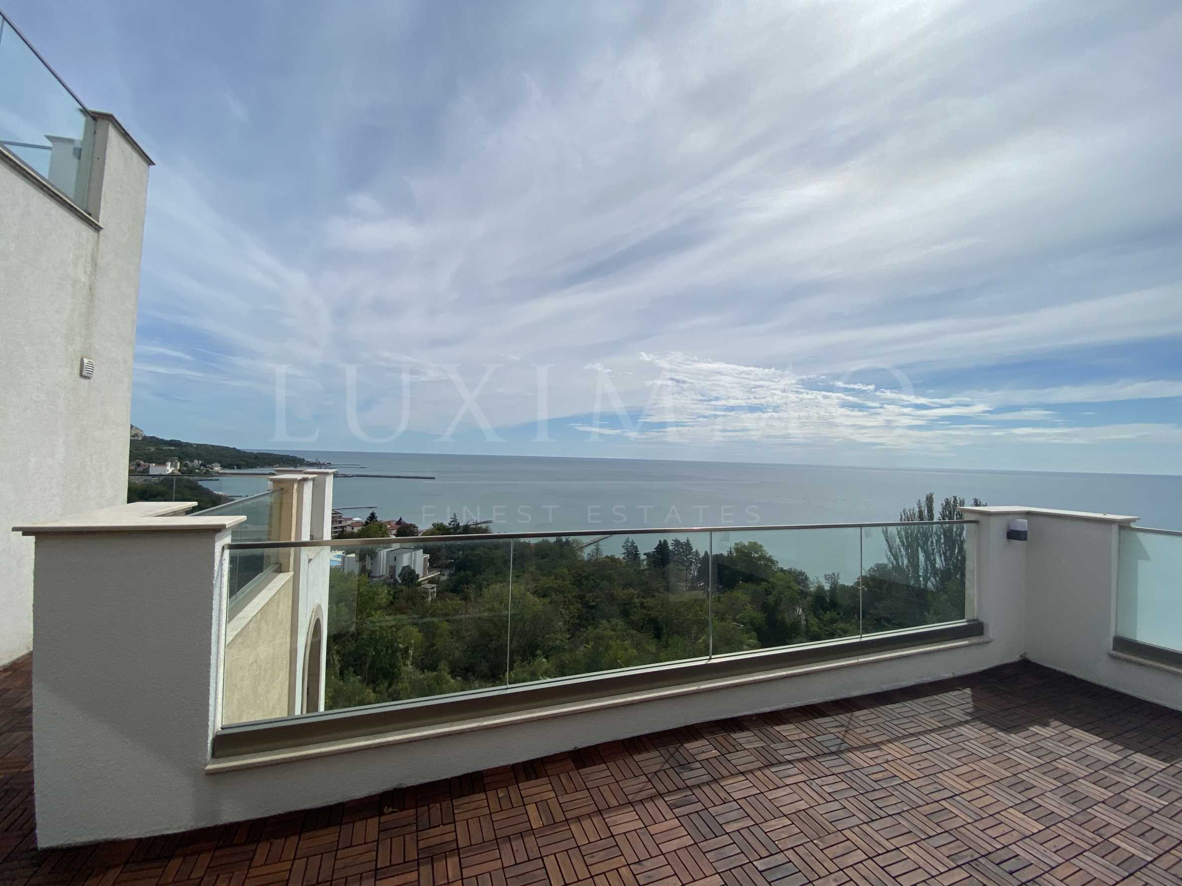 We present a spacious five-bedroom penthouse with a beautiful sea view in a gated complex in the town of Balchik. Excellent location 10 minutes walk from the town center, about 100 m from the Balchik Palace and 9 km from Albena.