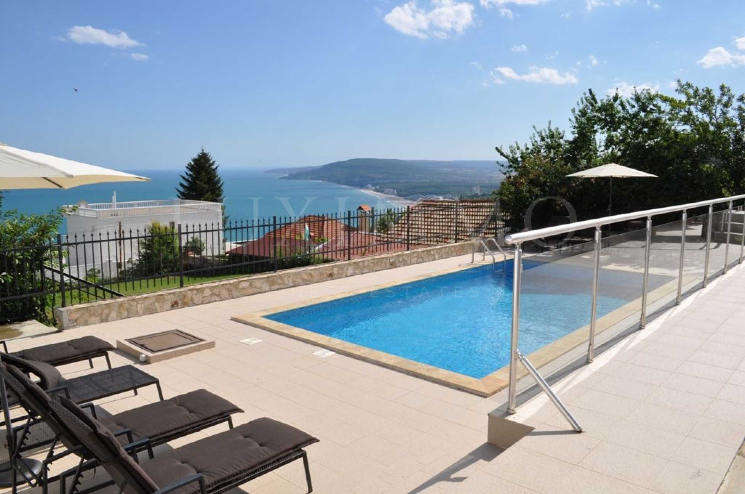 High in the hills above Albena resort, Villa "Avangard" enjoys a private, yet convenient location with spectacular views over the sparkling sea and the green hills stretching down to the resort. The elevated position of the villa allows glorious panoramic sea views from every corner of the house. This modern and stylish holiday home boast a private pool, surrounded by a stone paved terrace, which generously offers great sunny days around the cooling pool waters. Sunbathers can make the most of these fabulous sea views from the top floor balcony with hot Jacuzzi and garden furniture.