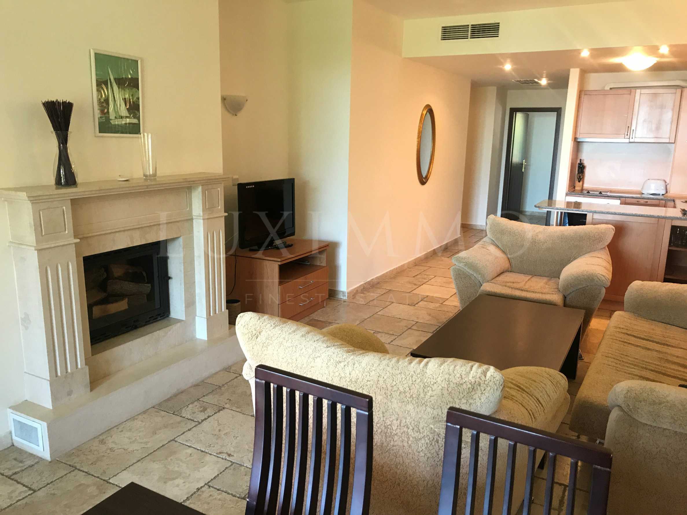 This 2-bedroom apartment is in the prime location - overlooking the Black Sea, the resort and Thracian Cliffs Golf. It has a total size of 120.64 sq.m, composed of two separate bedrooms, two bathroom/WCs, living room with open plan kitchen and fireplace, a corridor and a terrace. The apartment is offered for sale fully furnished with all ready-to-live amenities. It benefits of a large balcony where you can enjoy open-air dinner with direct view to the sea and the swimming pool.