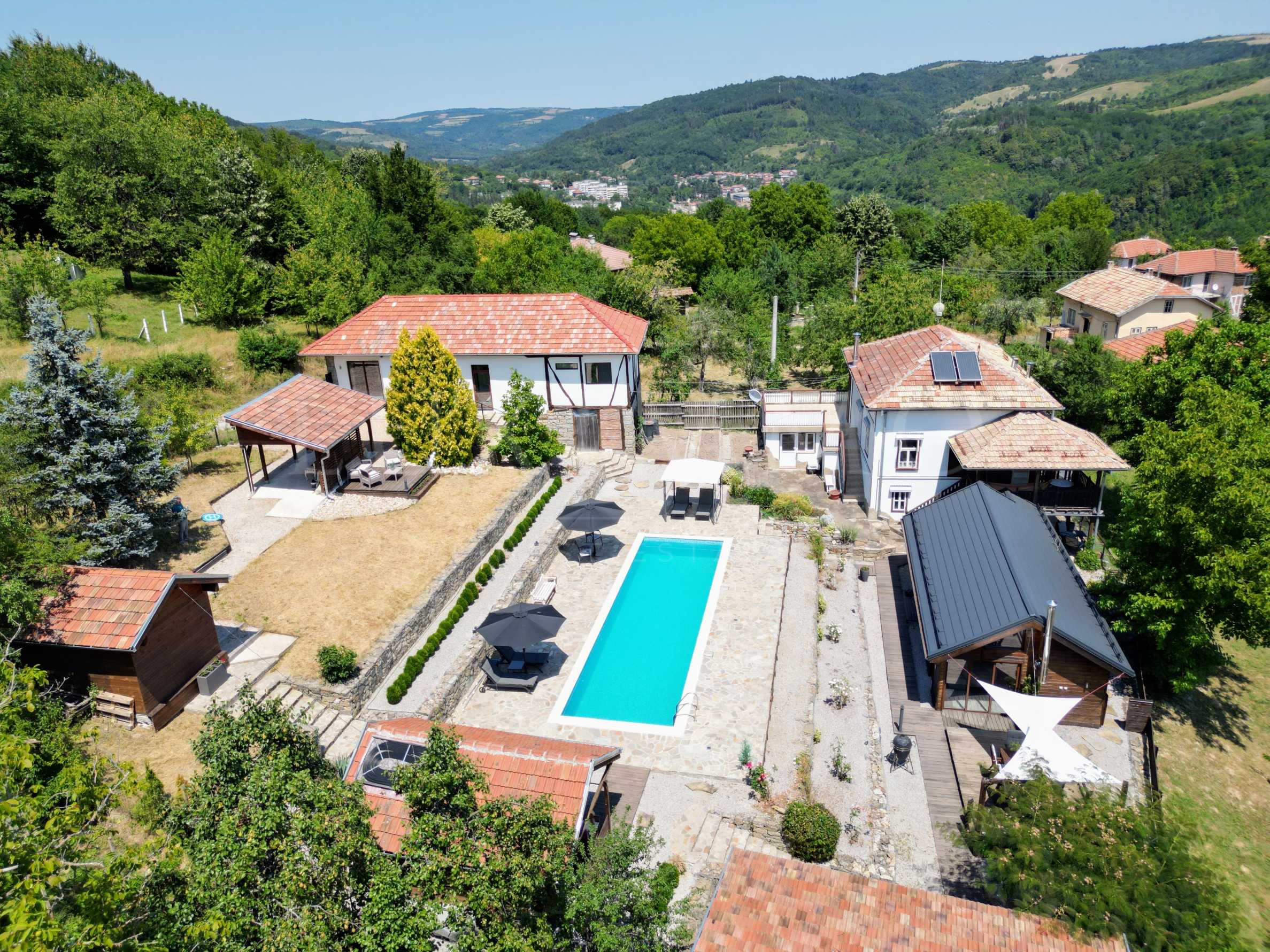 Lovely home in a small village 15 - 20 mins walk from Plachkovtsi, (many local shops) and a short bus ride to the lovely local town of Tryavna (brilliant market on a Monday morning). Tryavna is a picturesque mountain town with cobbled streets and interesting history. The distance from Sofia and Varna is more or less the same, approximately 3 hours drive, also accessible by bus and train (Bus from Sofia to Tryavna runs twice a day approx 19 Levs/ˆ8, takes about 3.5 hours). The most distinctive feature of Tryavna is its architecture with many of the original houses having been preserved. There are several small galleries, museums, workshops and ateliers. The town is famous for its woodcarving school and art galleries. Our home is the last house on a lane (i.e. no traffic) that leads up to hill tops with panoramic views and numerous walking trails within a short stride. It is a very safe environment, the neighbours are really friendly and very helpful. The air is clean, very peaceful with just the sound of the many bird species and stunning views from the house terraces. We are surrounded by walnut and fruit trees. We have been featured in "A Place in the Sun" which was aired on UK TV (2020 & 2021). MAIN HOUSE