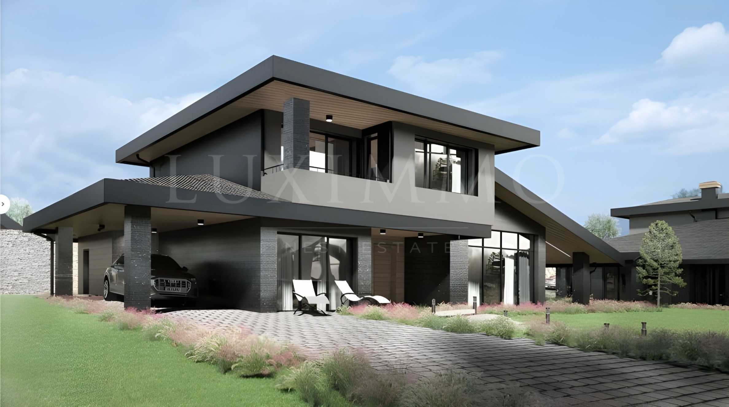 We present a newly built single-family house in front of Act 16, on two floors, with a total developed built-up area of 282.69 sq m, located on a separate regulated land plot of 1094 sq m in the ecological settlement Delta Hill, with an open view of Vitosha Nature Park.