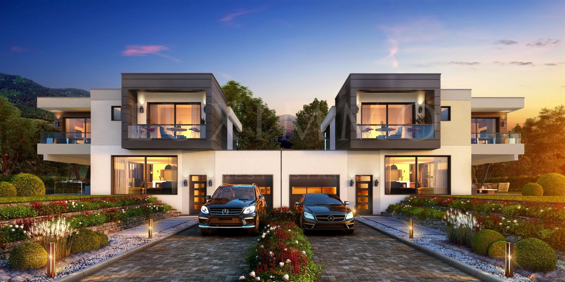 The complex is located on 100 acres. It has an administrative part, which has a coffee bar and restaurant, kindergarten, gym, mini market, car wash, football field, tennis court, private garage, 24-hour security. 90 luxury houses will be built, which are divided into 10 neighborhoods on a total area of 100 decares. Each of them has its own yard and garage / s. They are divided into three types according to your preferences.
