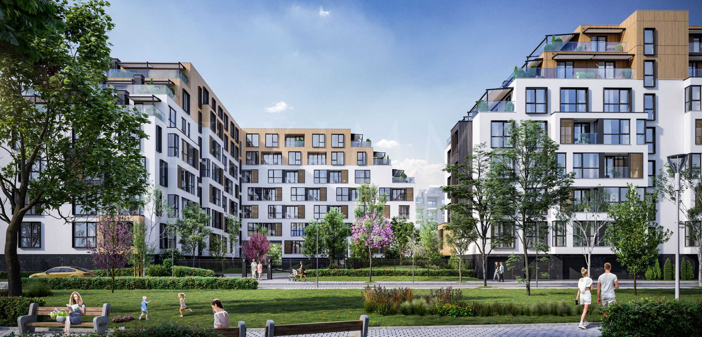 The complex impresses with its architectural concept, highlighted by individual elements, stepped terraces and facades in light natural tones. It consists of two buildings, each with seven residential floors, featuring a variety of functionally distributed apartments, as well as representative lobbies with a height of 6 m.