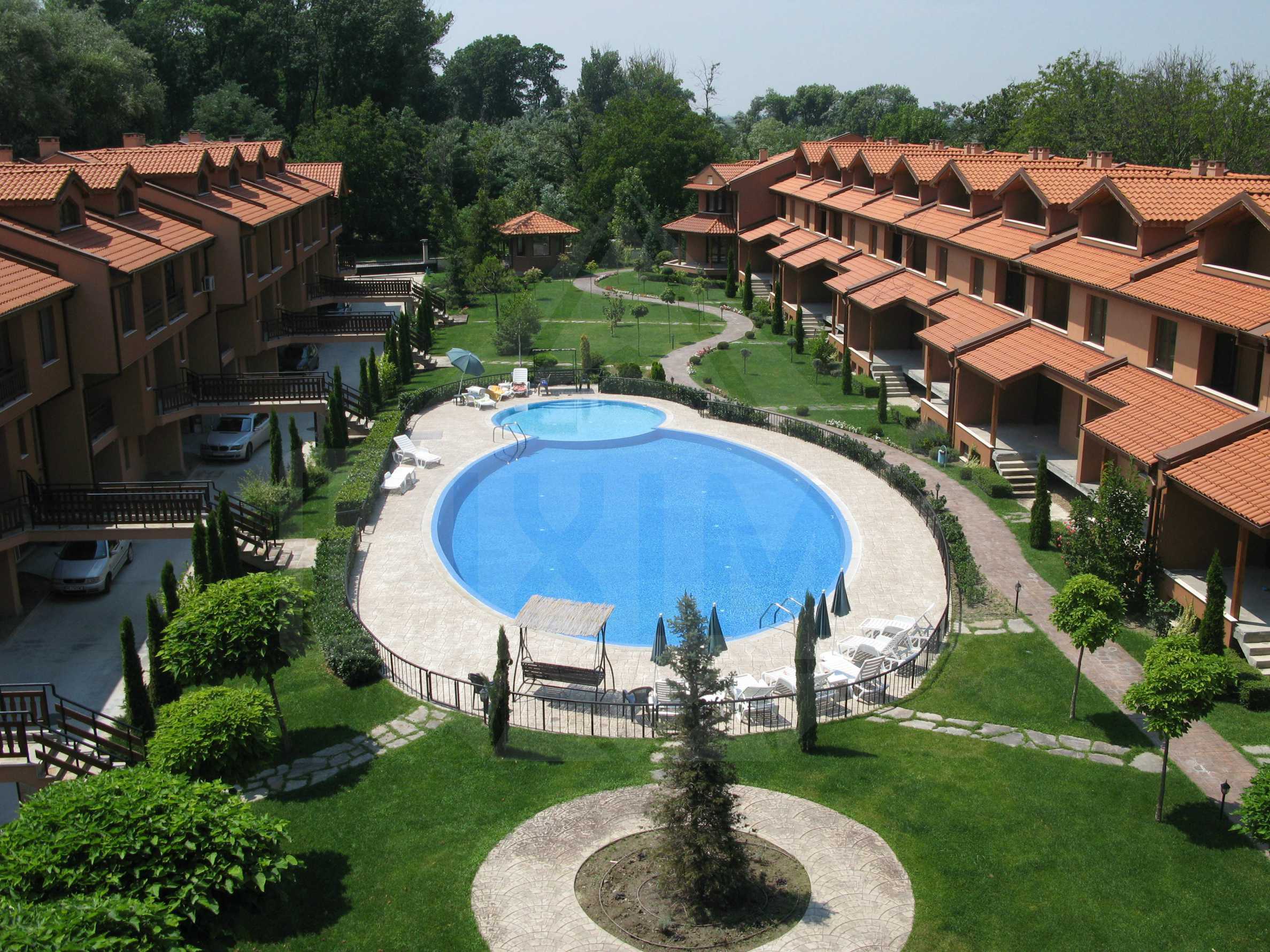 The apartments are offered for sale with unfinished interior. The balconies and windows of the apartments and the 20 townhouses in the complex reveal wonderful views to the inner well landscaped and maintained garden with swimming pool for adults which is big enough to meet the needs of all residents for sport and entertainment. There is children's section to the big swimming pool, with safe depth, as it is secured with a fence with lockable doors, preventing children from accidental falling.