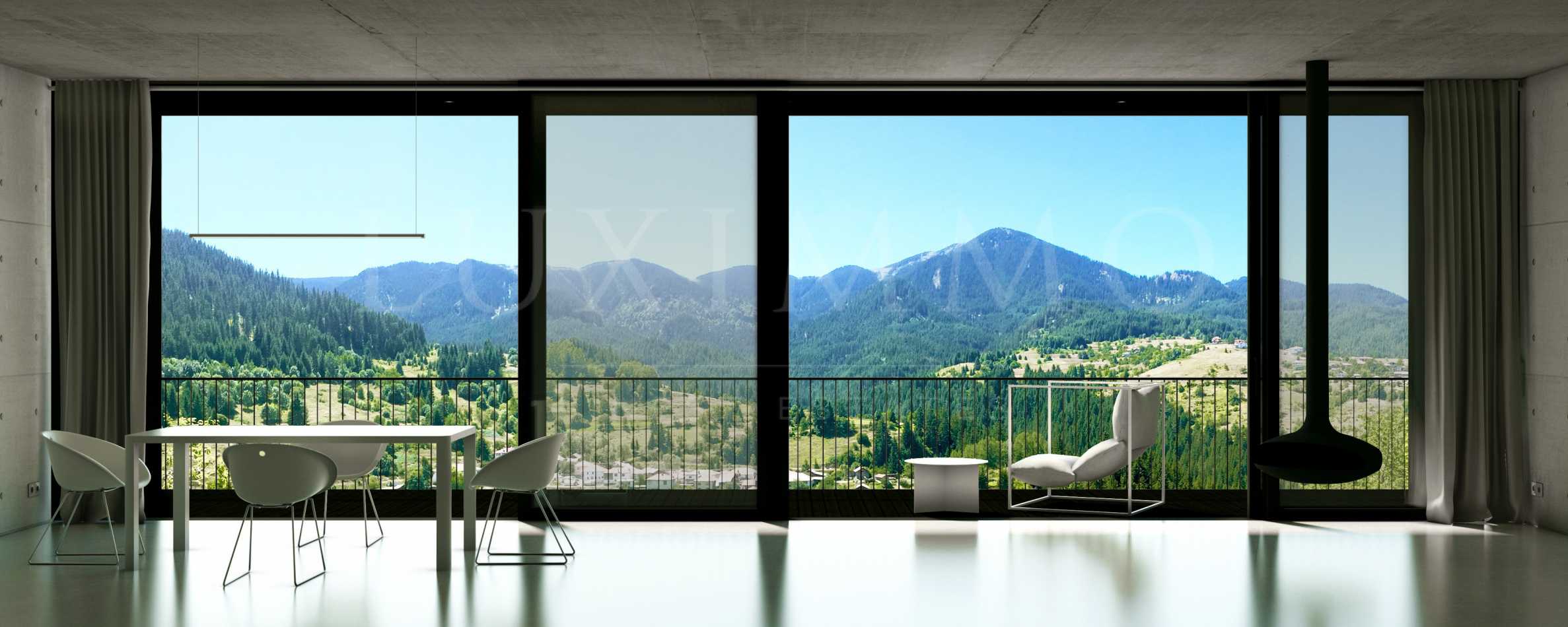 It has two bedrooms (13.96 m2) with its own loggias (7.70 m2), which are designed to provide complete peace and privacy to the occupants, as the view from neighboring houses to the interior is impossible. On the other hand, each room has a unique view of the distant peaks.