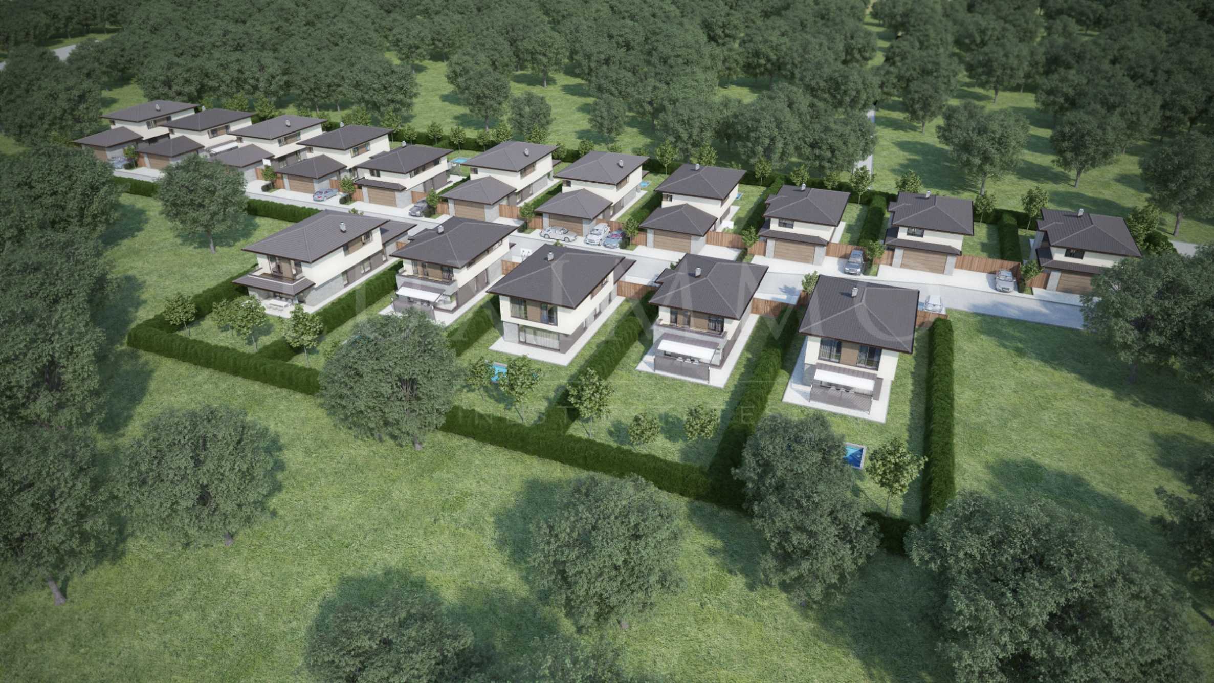 We present a type A house in a closed complex of 20 single-family detached houses with private yard spaces of 420 m2 in the town of Bozhurishte.