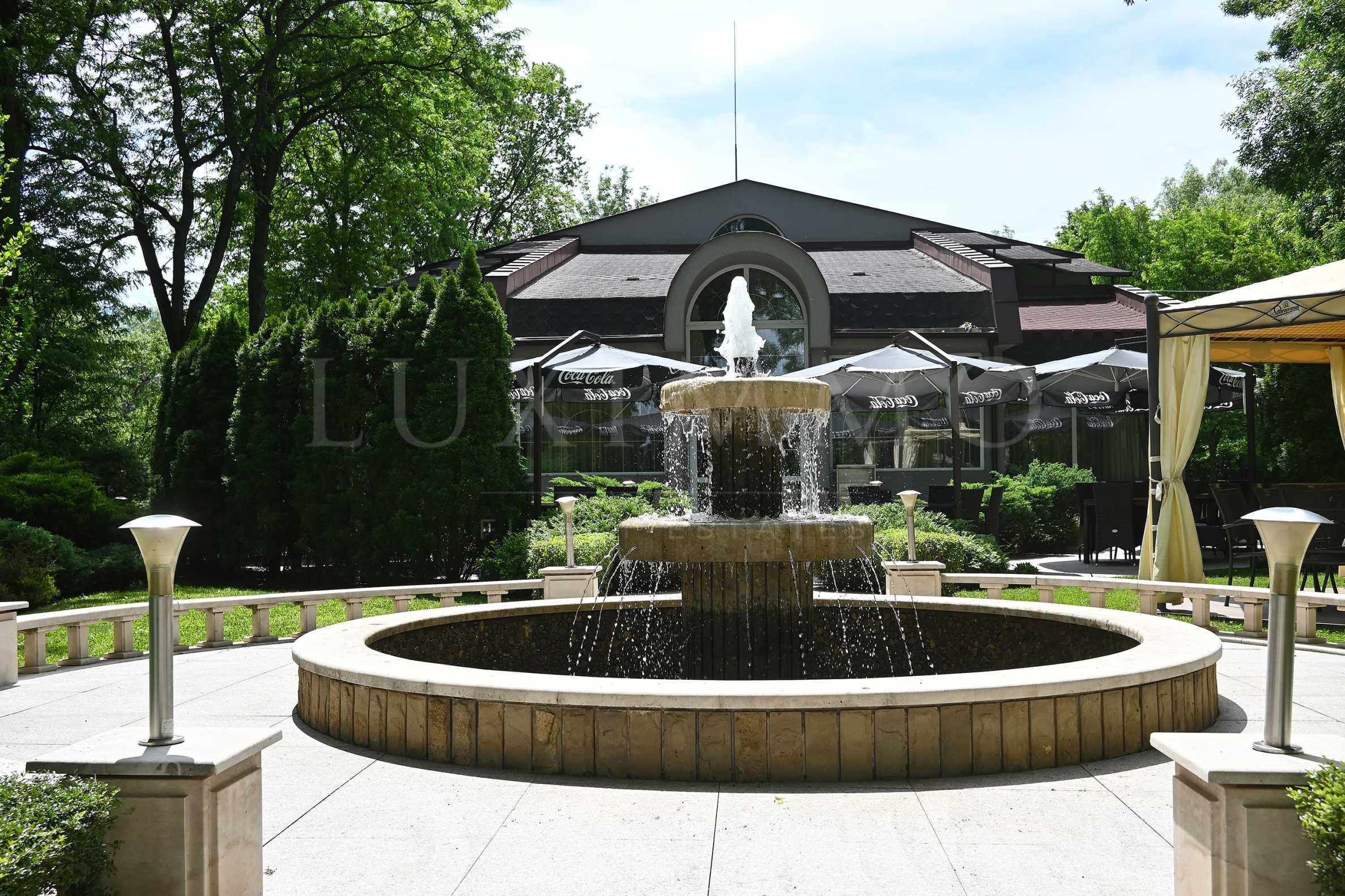 • Fountain and stylish exterior, cozy atmosphere;
