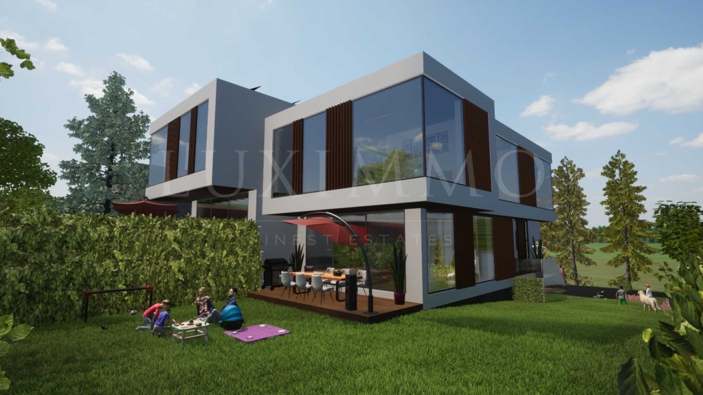 Modern detached house in a gated complex consisting of 3 detached houses in the village of Lozen. The project combines modern style, high energy efficiency and comfort. The design is in line with the latest architectural trends, as well as the location. The highest class of materials and systems are provided in order to achieve maximum energy efficiency and healthy living. Permission for use: until 10.2023