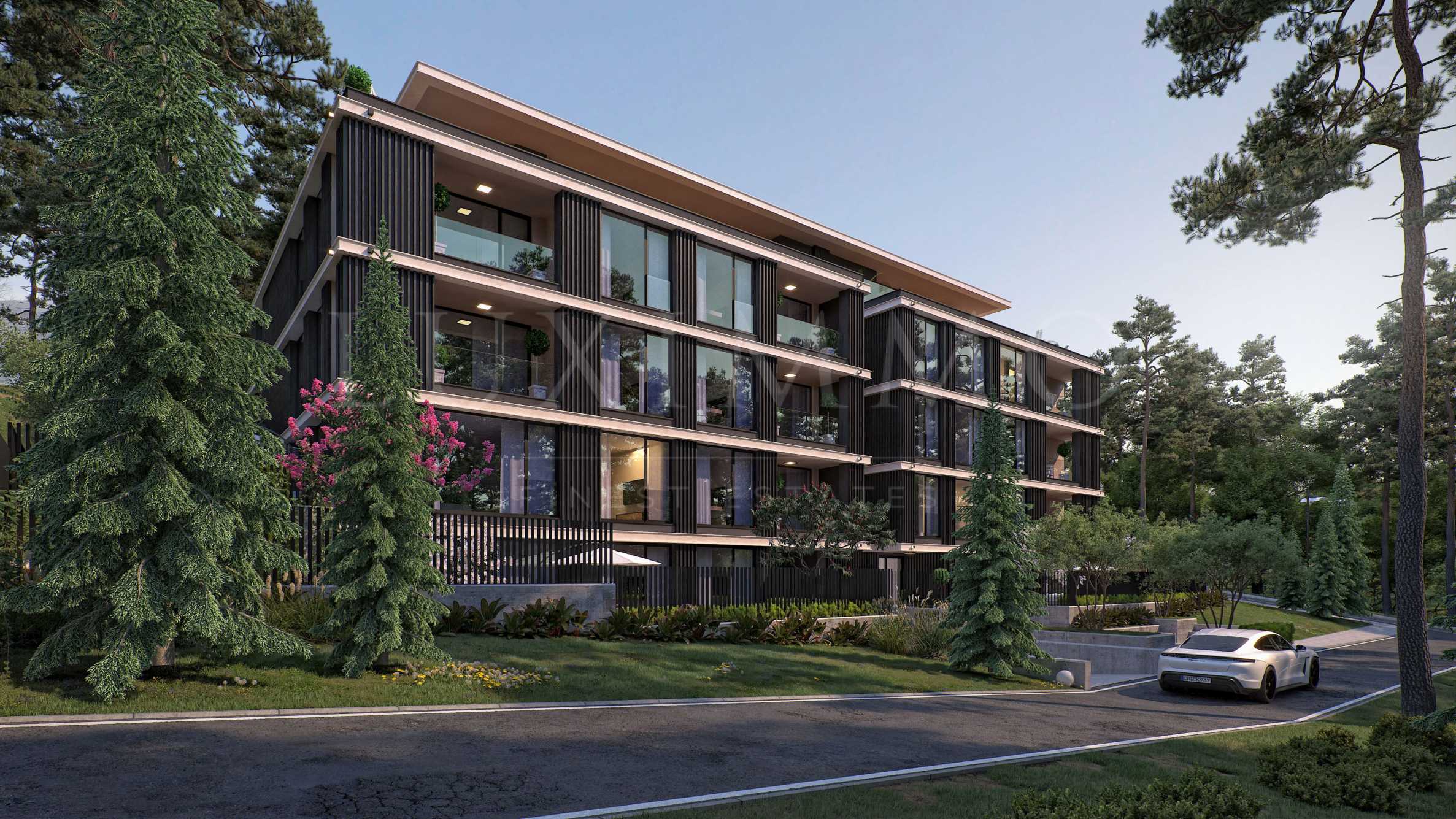 The apartments are three-bedroom properties and one four-bedroom apartment. They are offered in a degree of completion according to BDS. The apartments offer views of the lake or a picturesque pine forest behind the building, as the location is entirely surrounded by greenery and an already built-up environment with habitable houses - without the risk of future construction nearby.