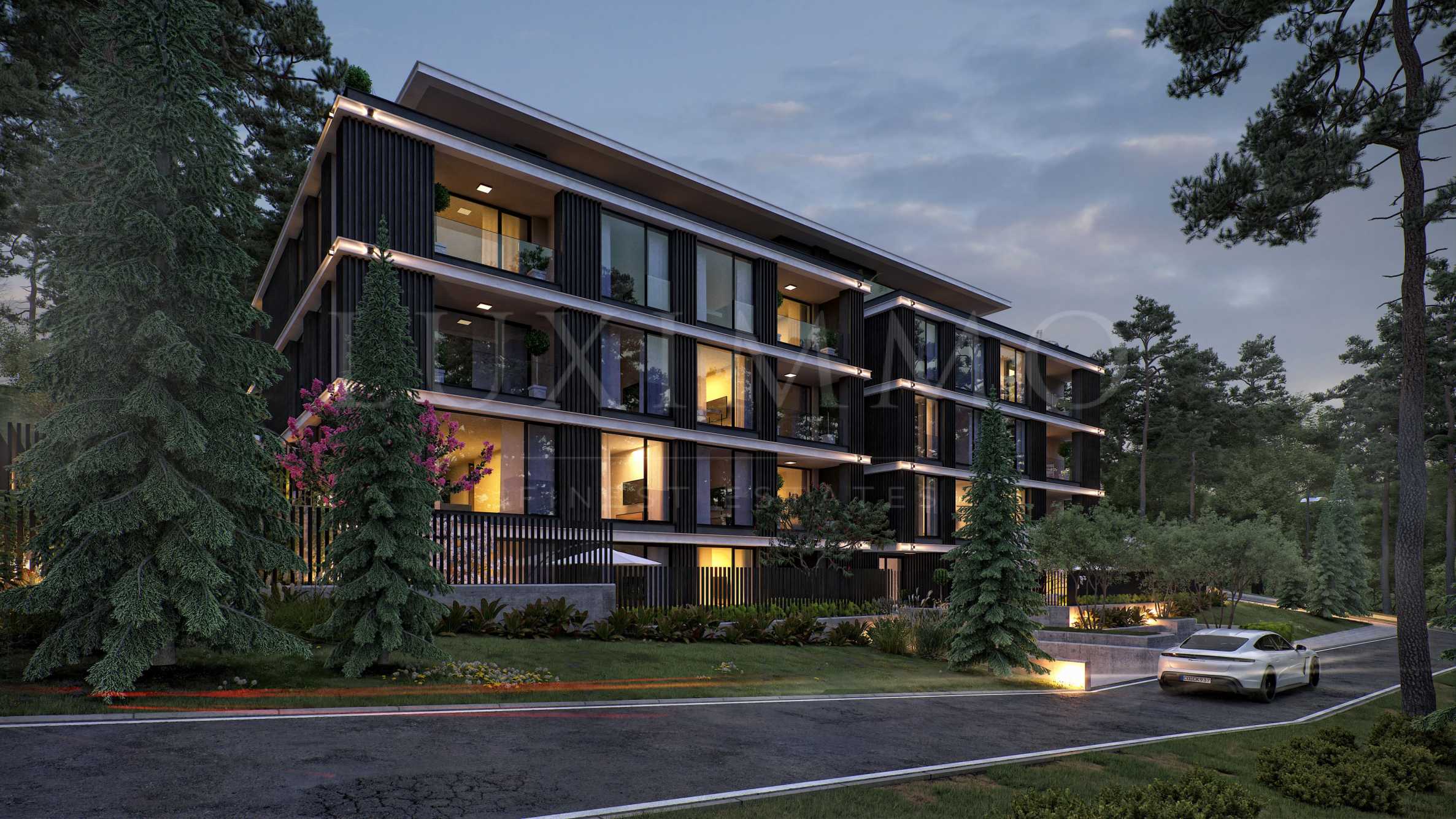 The apartments are three-bedroom properties and one four-bedroom apartment. They are offered in a degree of completion according to BDS. The apartments offer views of the lake or a picturesque pine forest behind the building, as the location is entirely surrounded by greenery and an already built-up environment with habitable houses - without the risk of future construction nearby.