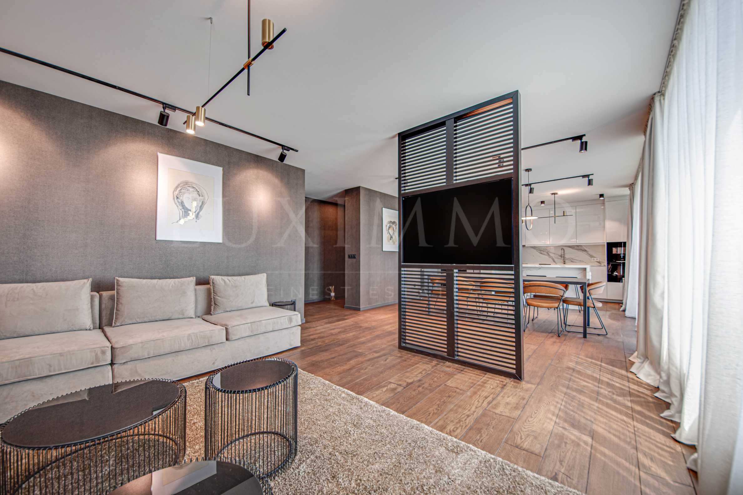 We present a designer apartment for rent in an extremely luxurious, new building with access control and underground parking.