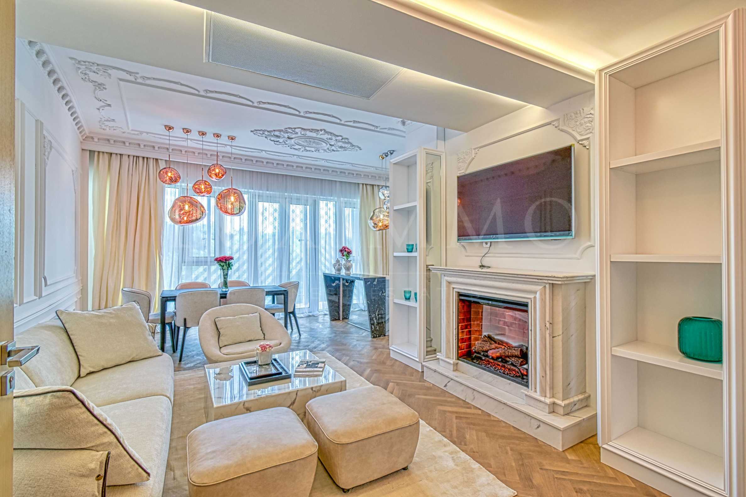 A jewel in the heart of Lozenets. High ceilings, massive doors with a height of -2.40 m., Plaster ornaments, warm colors, high class furniture and appliances. Convenience, comfort, coziness and a feeling of a real home. The property is fully finished and ready to move in. The apartment is for sale with the furniture.