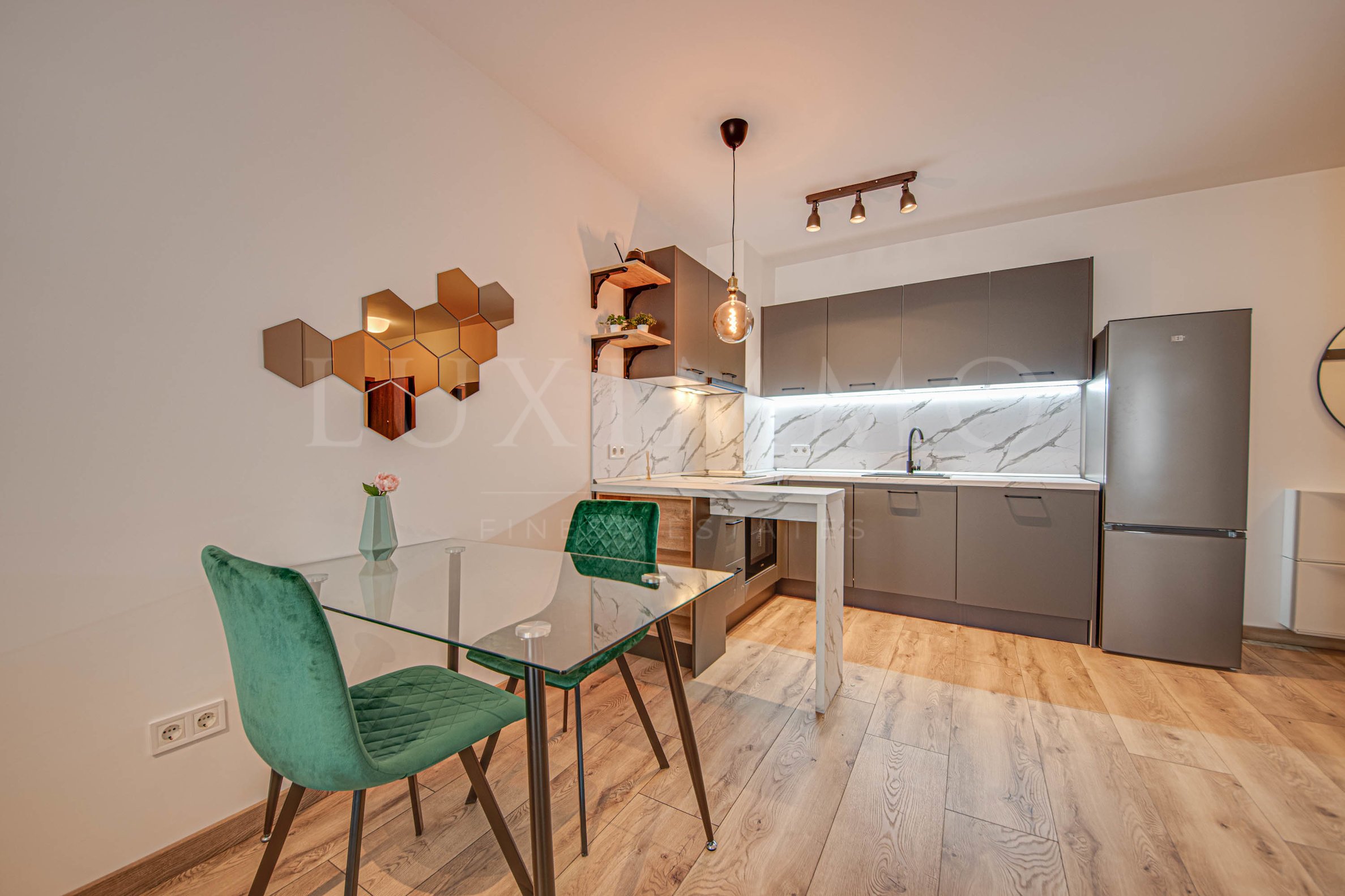 We present a one-bedroom apartment for rent in the Comfort Residence building - Simeonovsko. The location of the building provides quick access to the Ring Road and the center of Sofia. The building is conveniently located near a public transport stop, a future metro station, the universities of Studentski Grad, the Ring Road, the Ring Mall and Paradise Center shopping centers, Arena Cinema, Sofia Business Park, Vitosha Nature Park and the central part of Sofia. The project enjoys a quiet internal location in the neighborhood and at the same time is positioned on the second line from the main capital boulevard "Simeonovsko Shose".