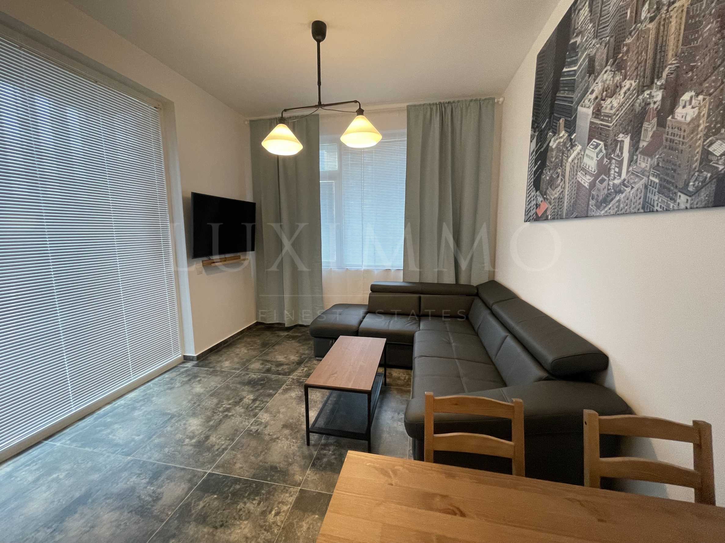 It is located on the ground floor, with a living area of 45.95 m2 and a functional layout of: entrance hall, living room with high quality kitchen, comfortable bedroom and bathroom. To it belongs a garden with an area of 8.63 m2, suitable for recreation. The property is compact, with modern interior in gray tones, high class equipment, spectacular lighting and details.